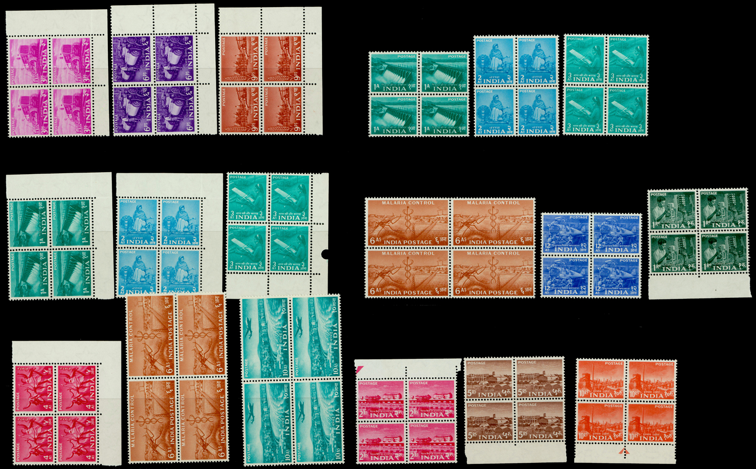 Plan set to 5r + 1958-63 10r in MNH blks/4 each. SG 354/370, 416. £500+ (Image)