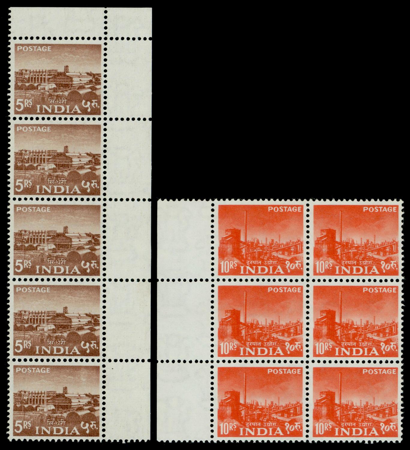Year Plan 5r marginal blk/6 + 10r marginal strip/5, MNH. SG 415/416. £345+ (Image)