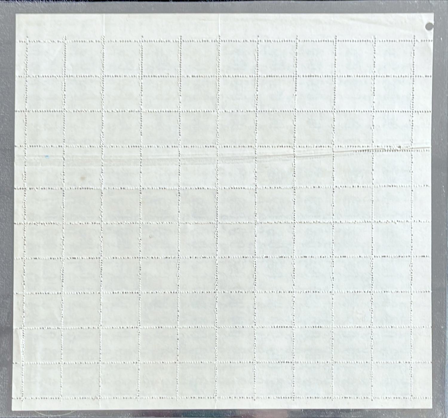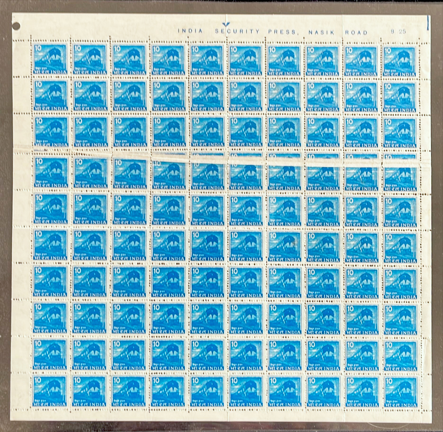 Locomotive 10p new blue, complete sheet/100, variety: pre-print horizontal paper fold affecting third and fourth rows, MNH. SG 729var (Image) (Imageb)