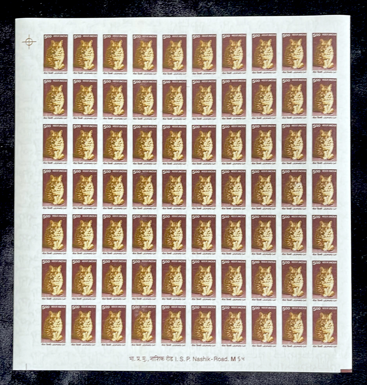 Wildlife Leopard Cat 5r complete sheet/70, variety: imperforate, MNH. SG 1928var (Image) (Imageb)