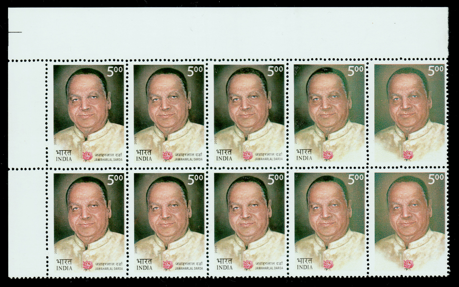 Darda 5r, top left marginal blk/10, variety: black omitted partially in fourth stamps and completely in 5th stamps of each row, 4 stamps being affected, MNH. SG 2298var (Image) (Imageb)