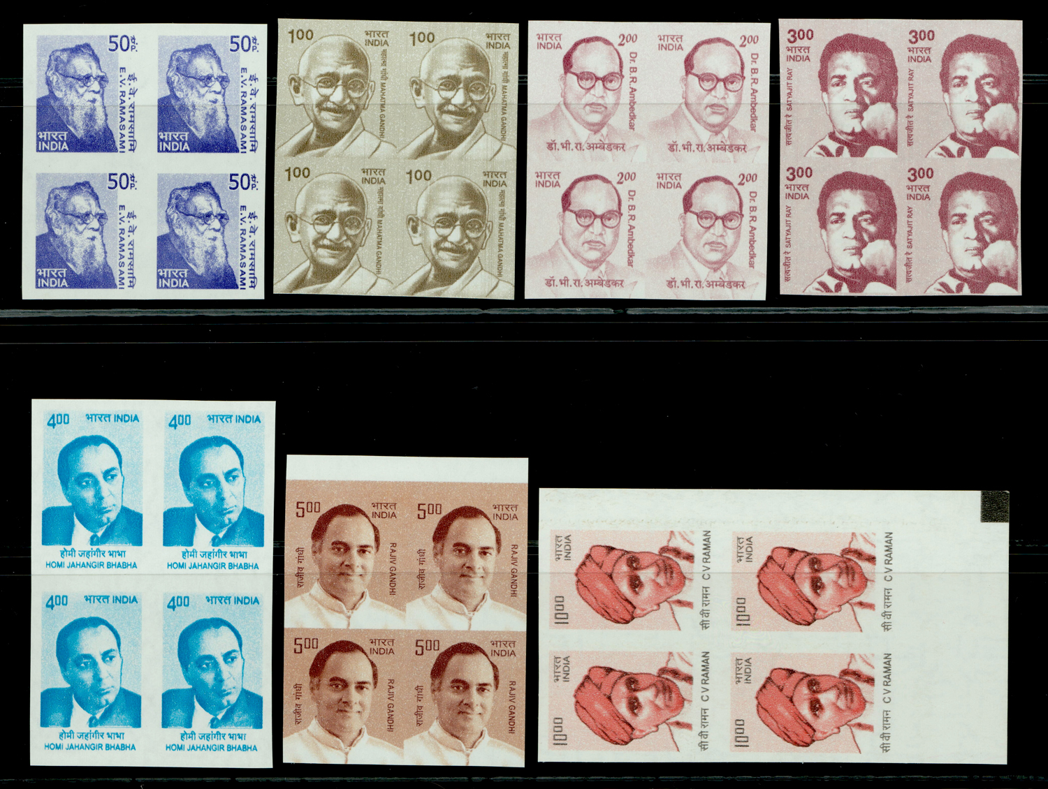 of Modern India, 10th series, 50p-10r variety: imperforate blks/4, MNH. SG 2531/2538var (Image) (Imageb)