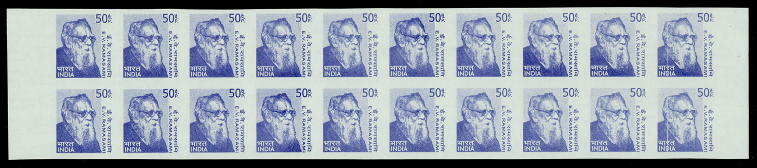 of Modern India, 10th series, E.V. Ramasami 50p, variety: imperforate pane/20, MNH. SG 2531var (Image) (Imageb)