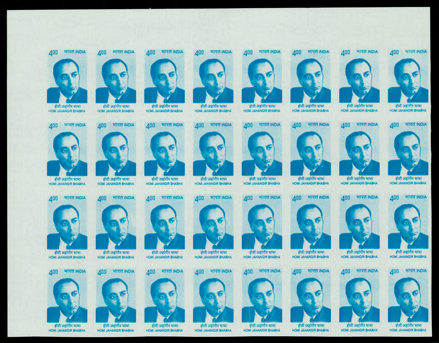 of Modern India, 10th series, Homi Jahangir Bhabha 4r, variety: imperforate blk/32, MNH. SG 2535var (Image) (Imageb)