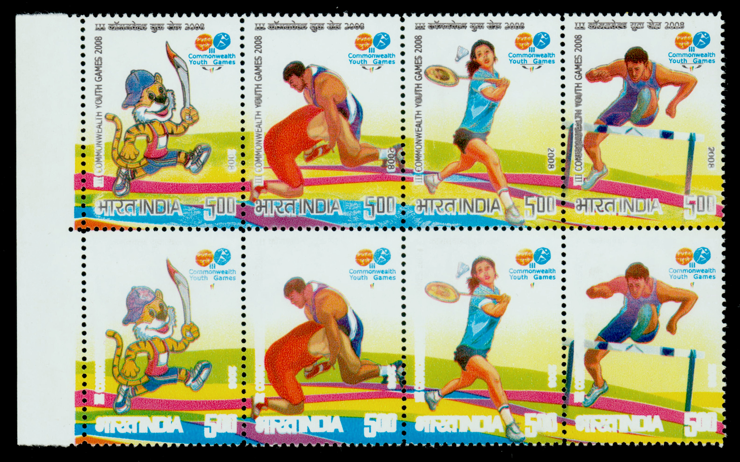 Commonwealth Youth Games 5r, left marginal setenant blk/8, variety: black omitted partially on top row and completely in the bottom row, MNH. SG 2509/2512var