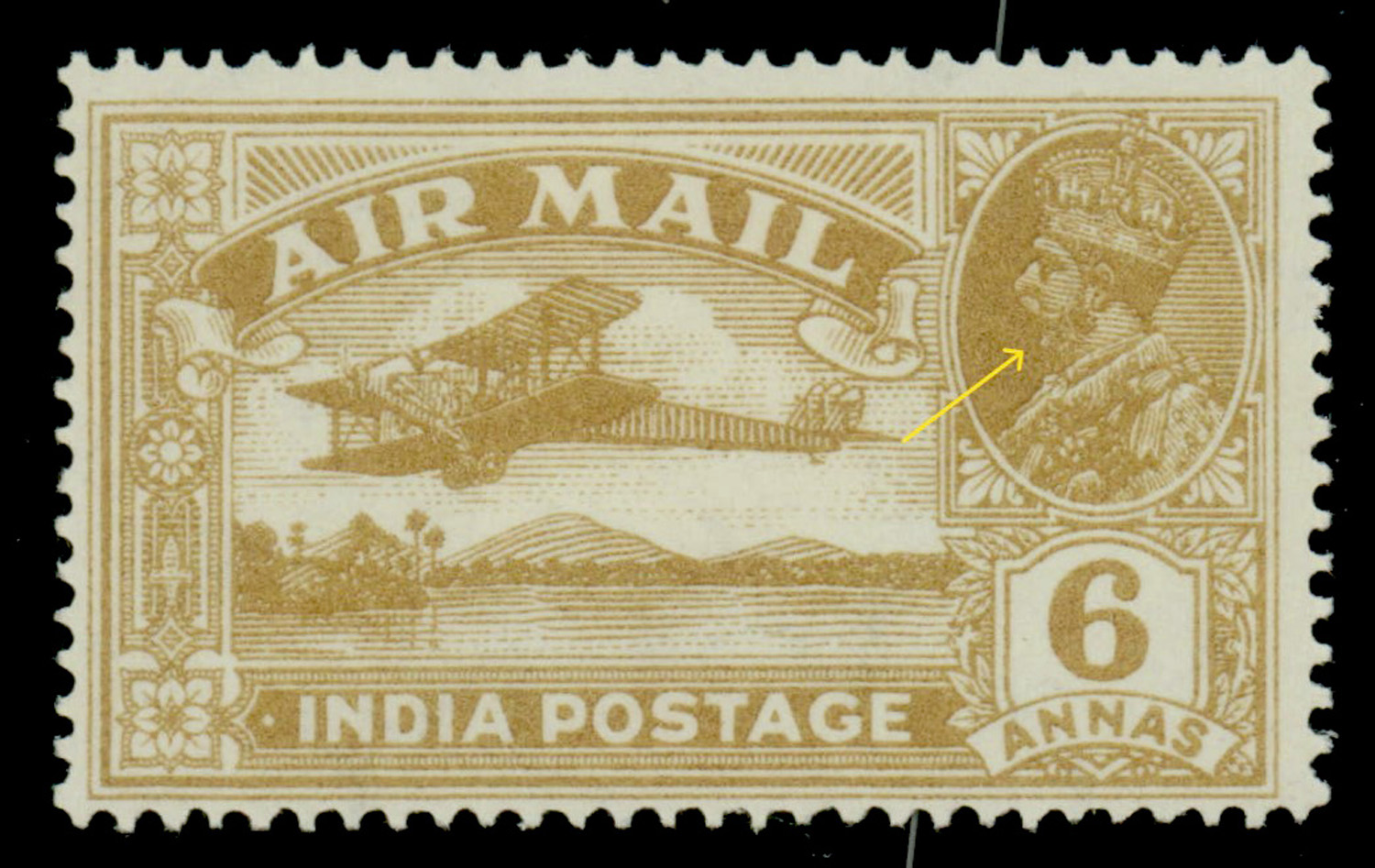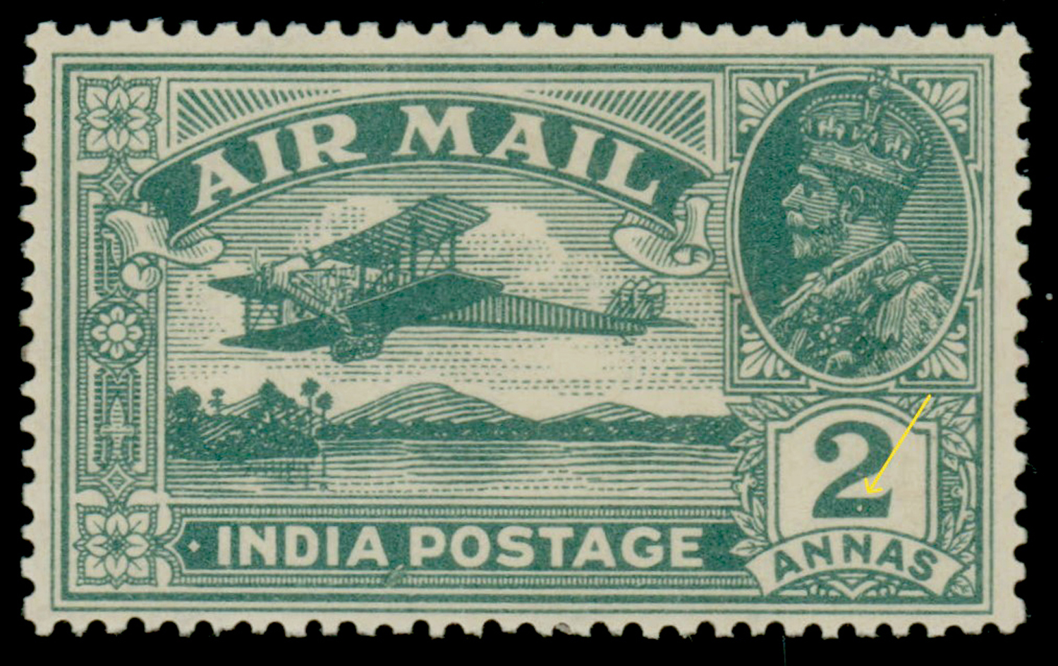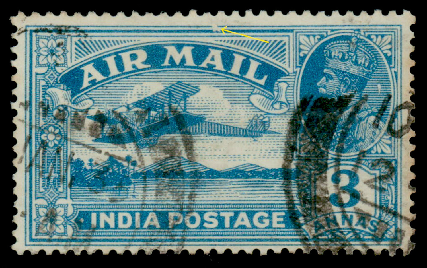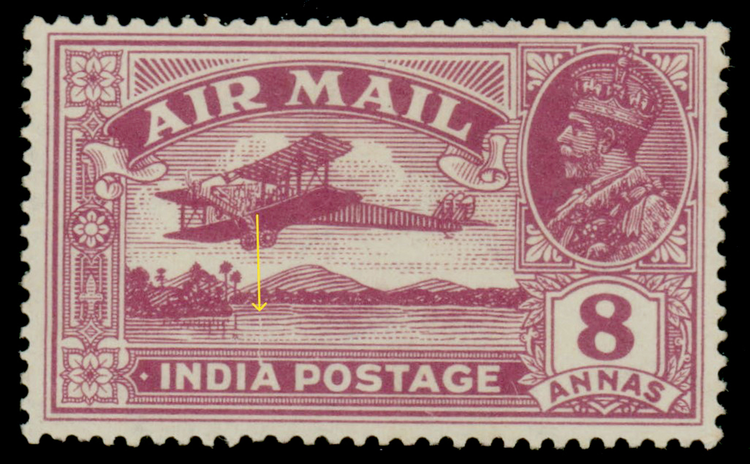Airmail, variety: hairline from hill to "A" of INDIA, mint. Dave type 21 (Image)