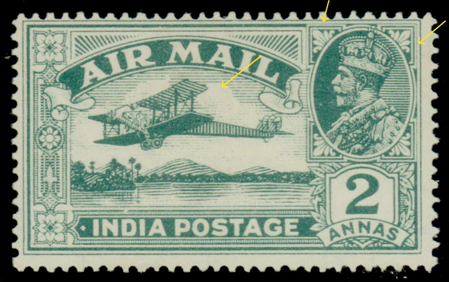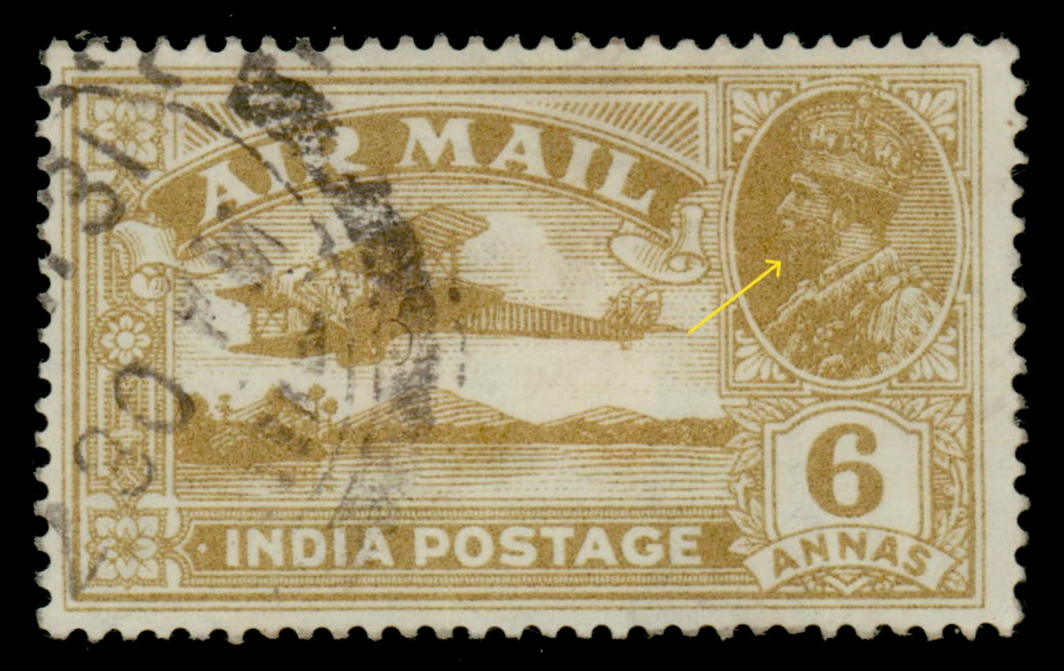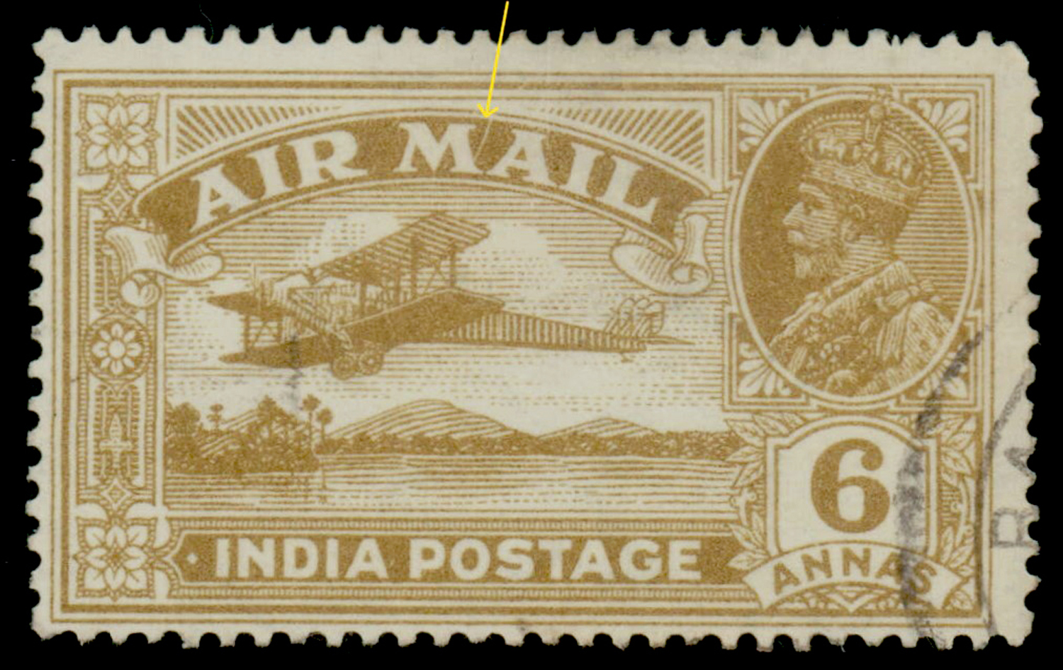 Airmail, variety: hairline from hill to "A" of INDIA, mint. Dave type 21 (Image)
