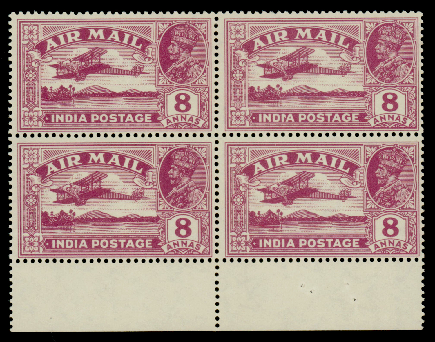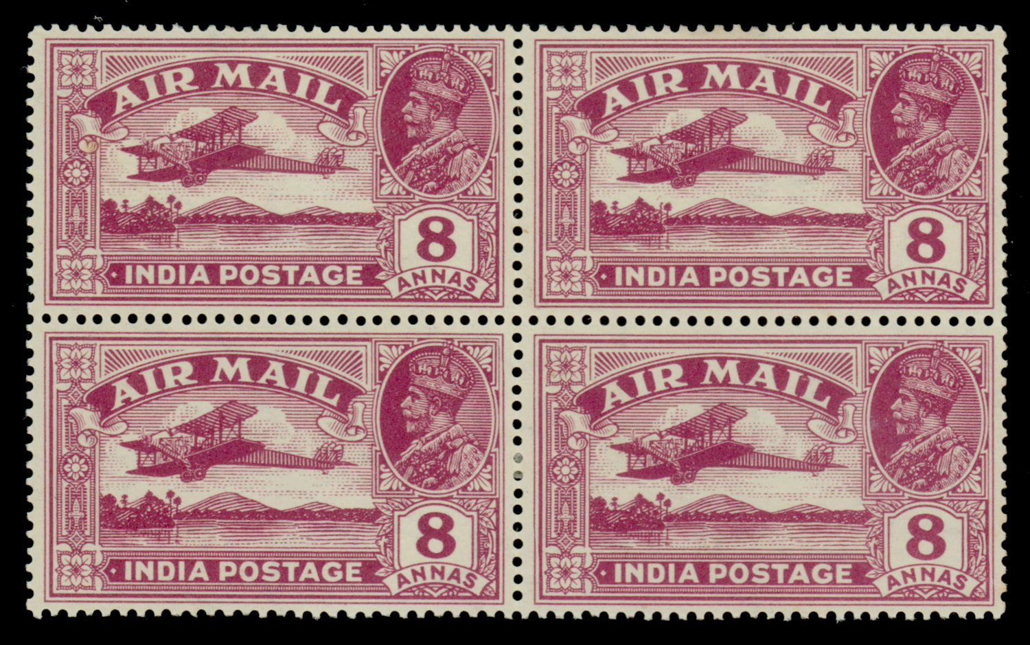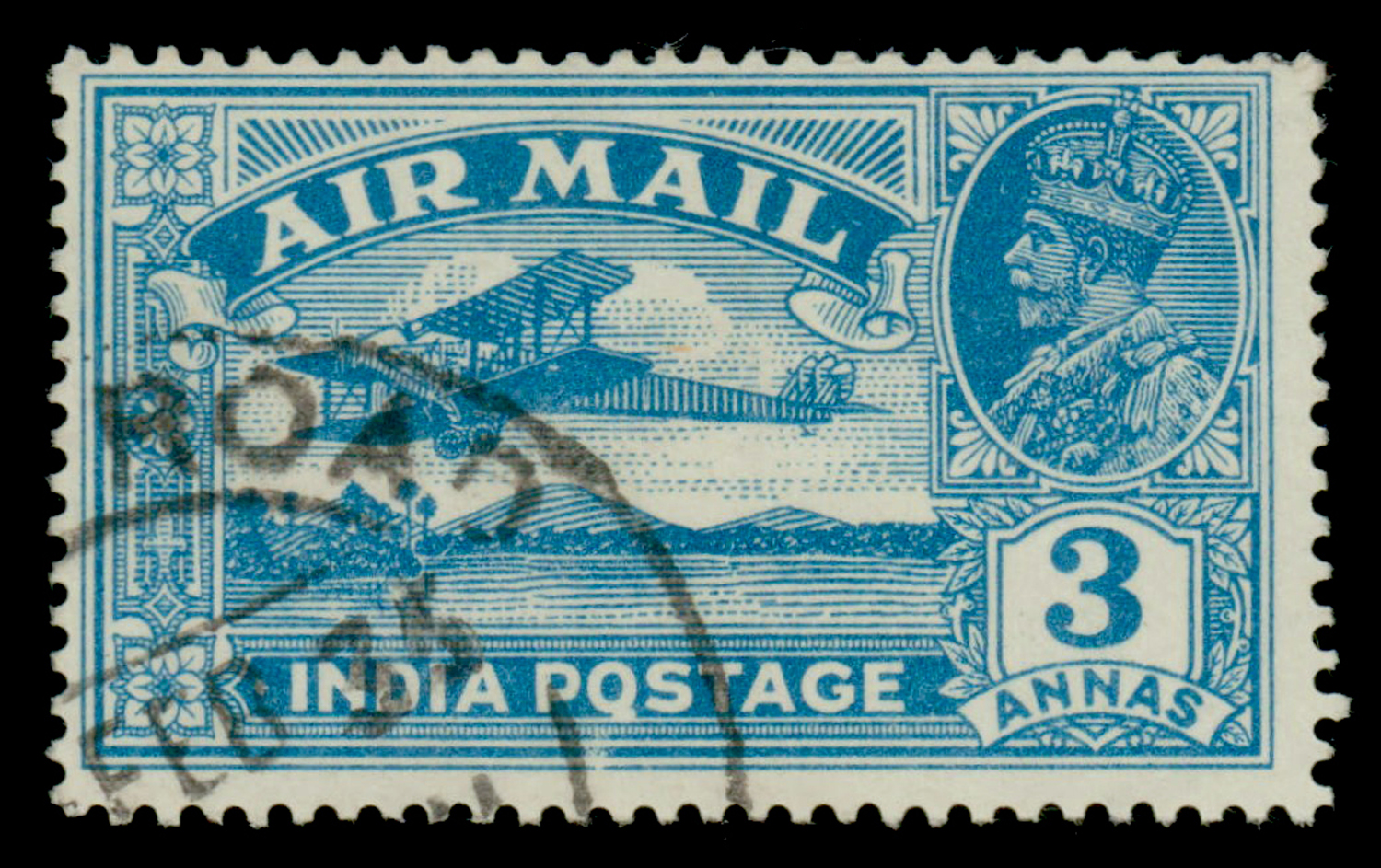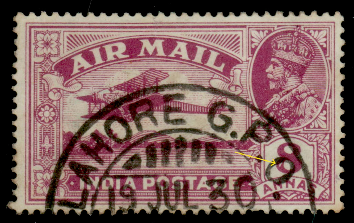 Airmail, variety: hairline from hill to "A" of INDIA, mint. Dave type 21 (Image)