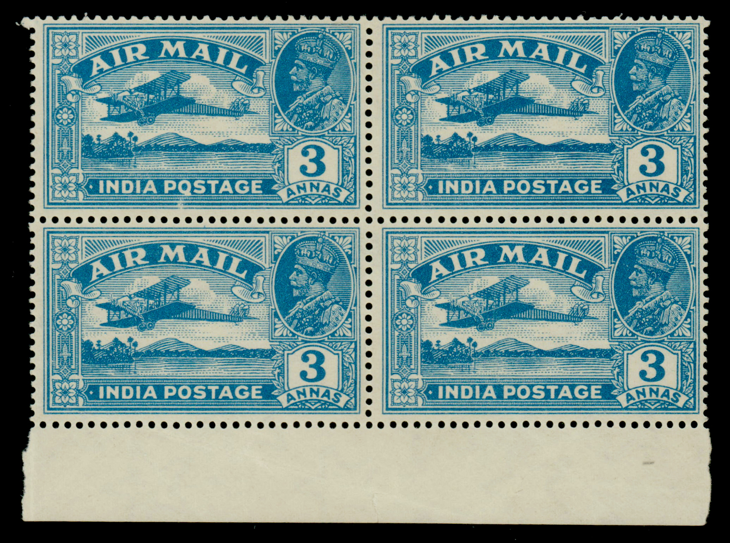 Airmail, bottom marginal blk/4, variety: reversed serif, mint. SG 224b £980++ (Image)
