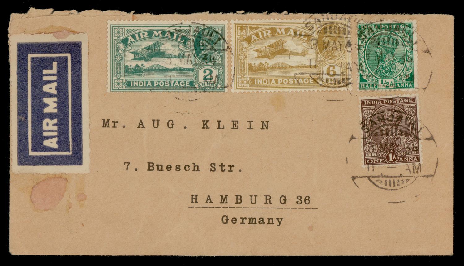 Airmail, variety: blob over "AIR", on cover from Sanjauli to Germany, additionally f.w 2a + 1a + ½a (Image) (Imageb)
