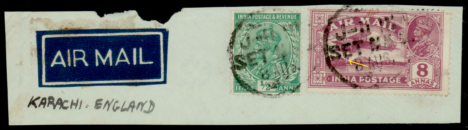Airmail, variety: broken lower trunk, along with ½a on portion of airmail cover. Dave type 22 (Image)