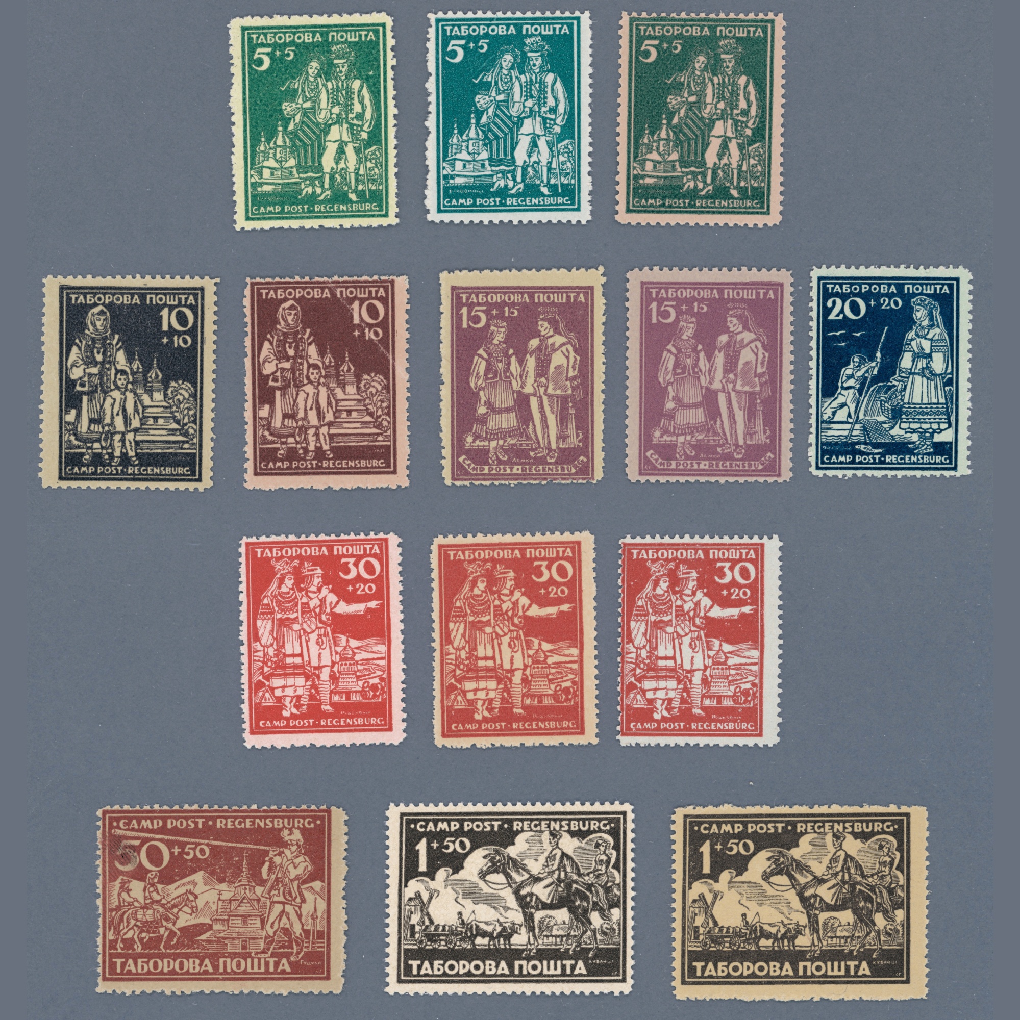 1947 Germany - Ukraine - Regensburg Camp Post mint never hinged set with colour variants | The brown 10+10 has a fold