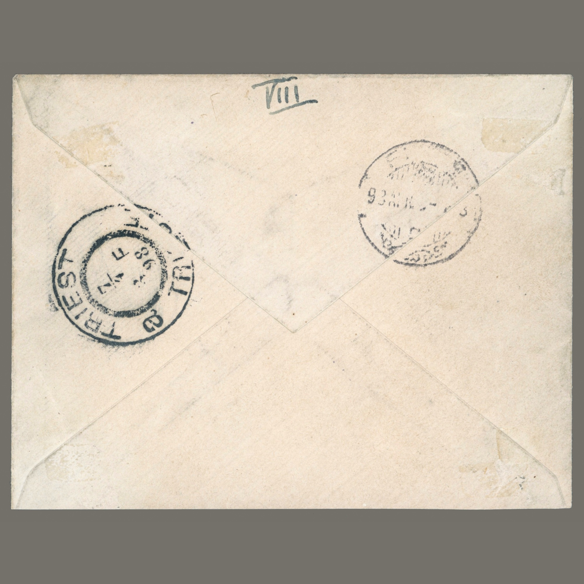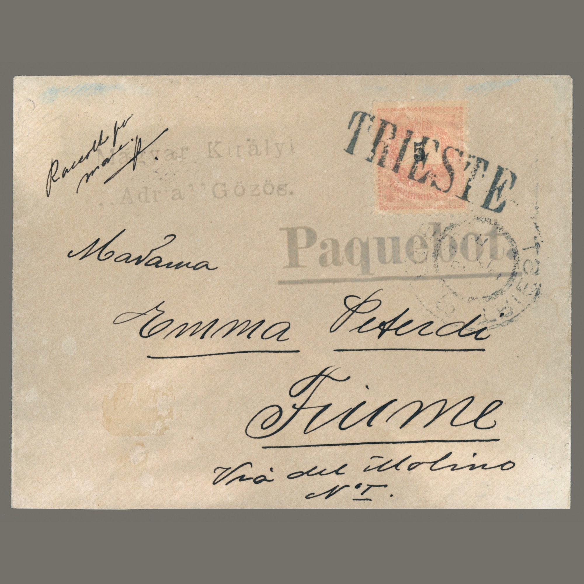 1893 Hungary - Peterdi cover, Paquebot + Adria Steamer and Trieste port postmark - rare | Unfortunately, the paper on the