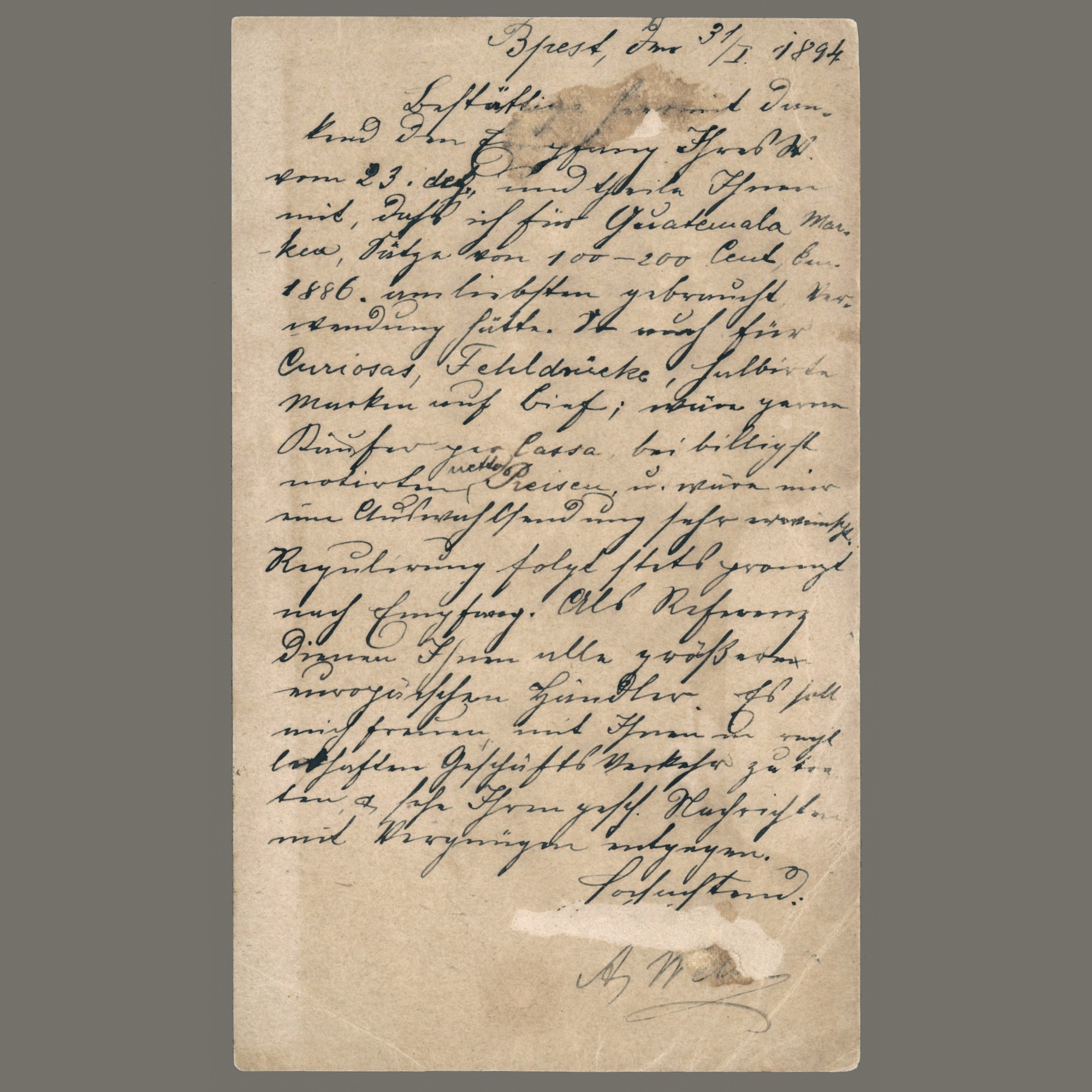 letter of A. Weisz stamp dealer.(Image 1)