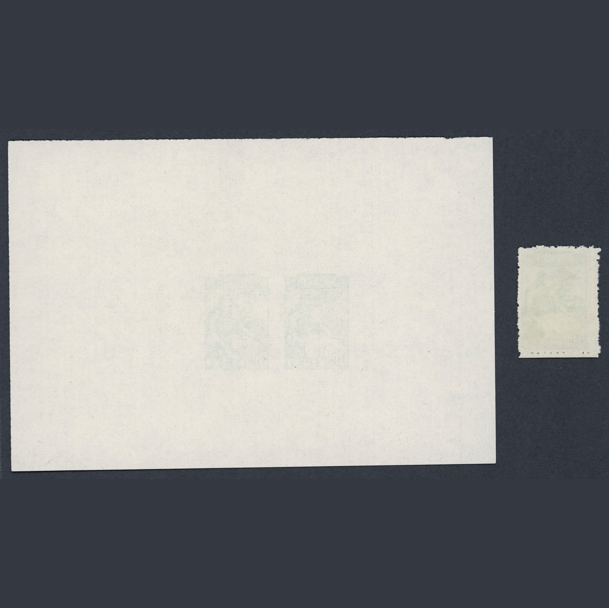 1953 North Korea - two-picture proof of the "May Day" green 10 won stamp and an imperforated stamp | It's not a reprint.(Image 1)
