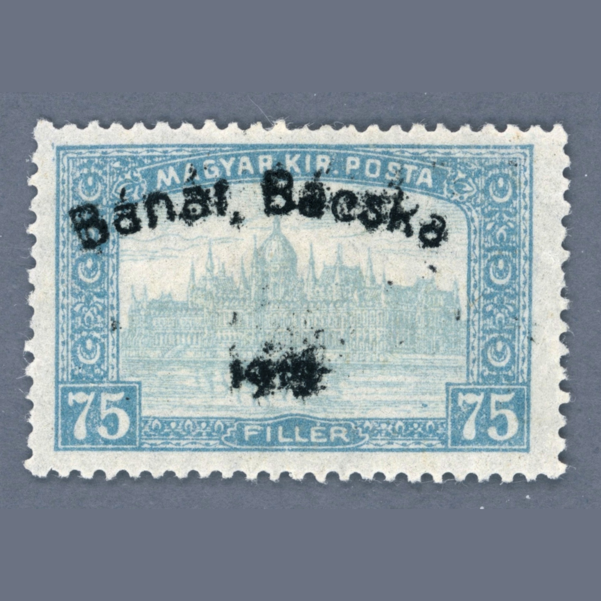 1919 Romania - Serbia - Bánat-Bácska Parliament 75 filler the overprint with inking error, mint hinged * | Prüf: Bodor(Image 1)