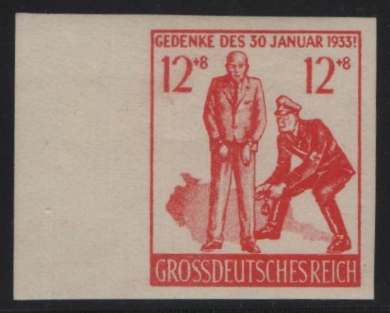British Propaganda stamp parody of Scott B289 / Michel 906, design shows Himmler putting shackles on an already handcuffed civilian; L margin single, imperf, full OG NH VF+ (Michel 32B) (Image)