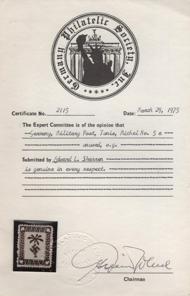 Tunis Palm Tree Feldpost stamp, full OG, NH, signed Dr. Bohne GPSY and Pickenpack BPP, 1975 GPS Cert, F-VF+ (Michel 5a) (Image) (imageb)