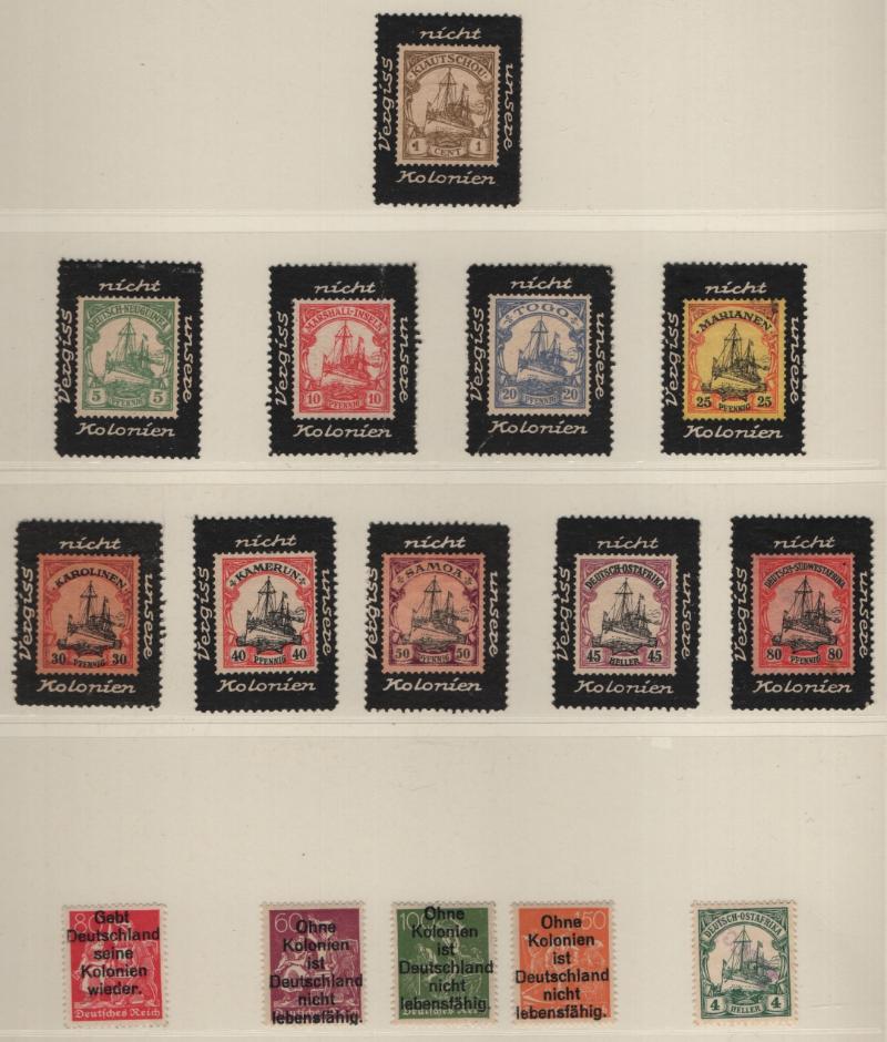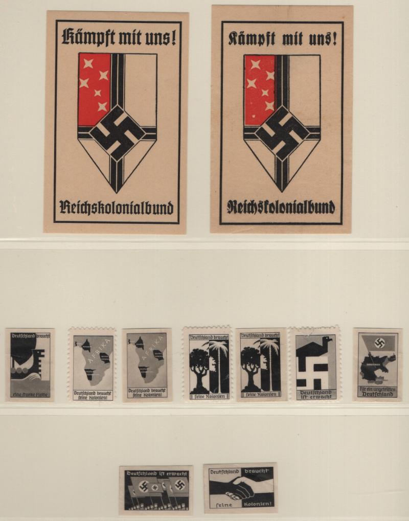 GERMAN LOST COLONIES Comprehensive collection of pre-Third Reich items for the Colonial cause, incl labels, poster stamps, picture postcards and more; a few pre-war colonial exhibition poster stamps and Gruss aus PPC, several complete sets of the