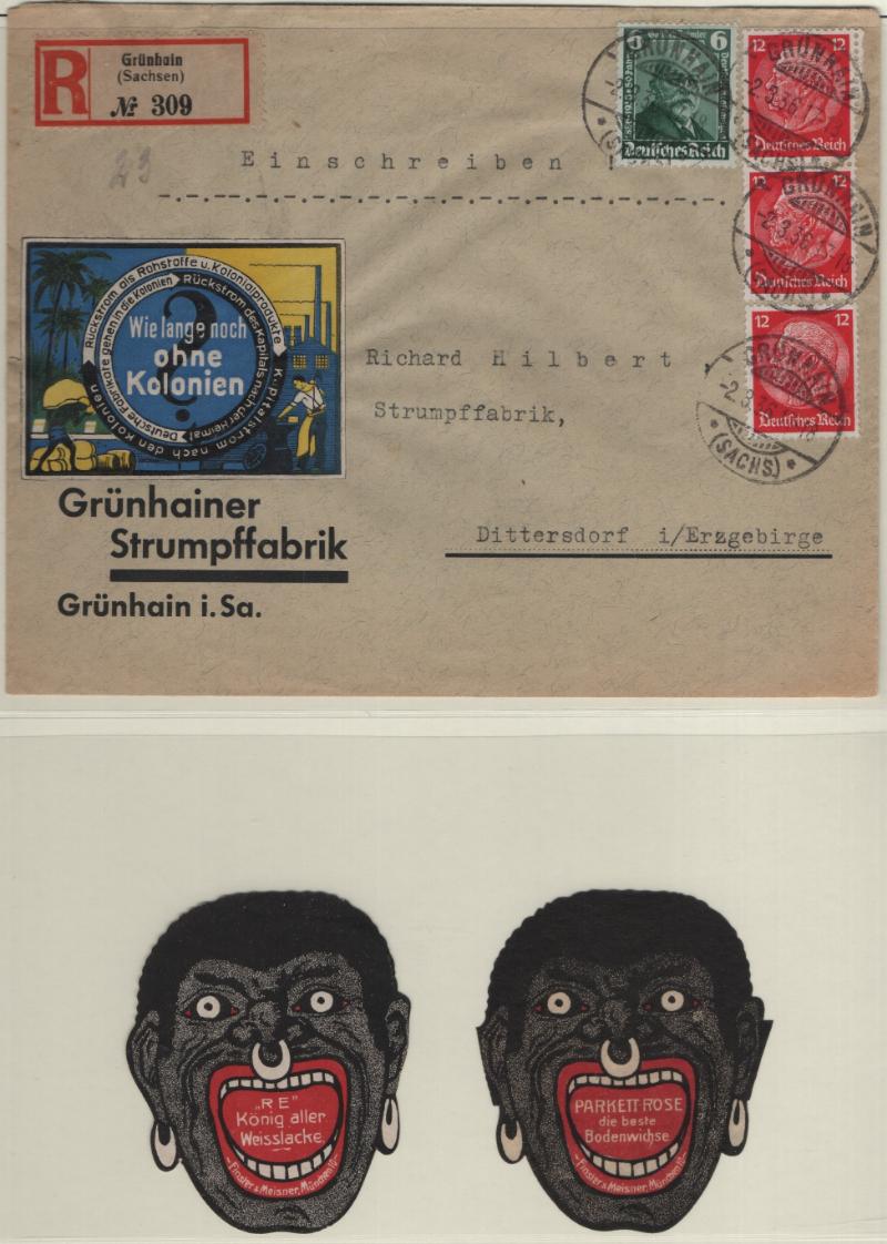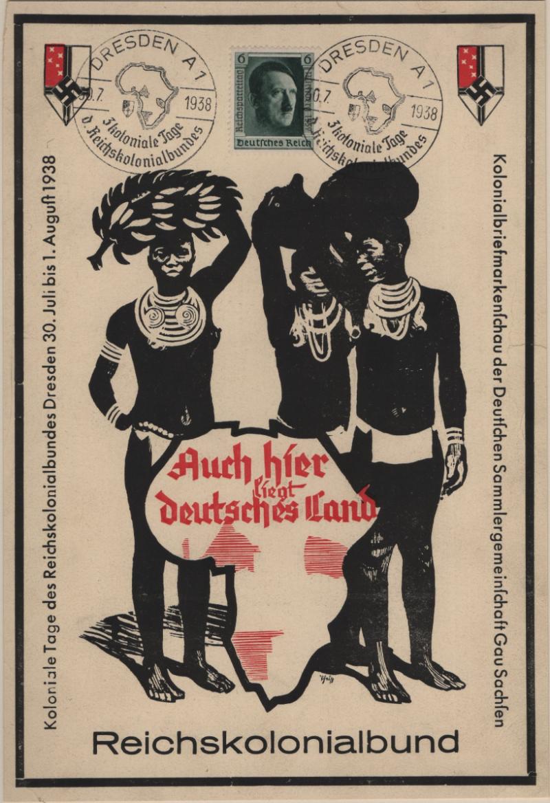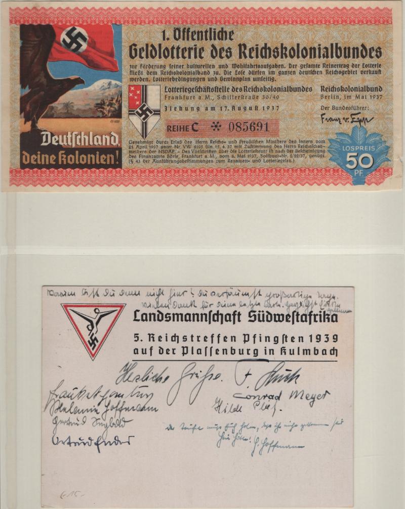 GERMAN LOST COLONIES Collection of Third Reich era covers, cards, postcards and some ephemera related to the Lost Colony cause, incl Kolonialbund cards, labels and other propaganda; numerous picture postcards showing colonial scenes and people, maps,