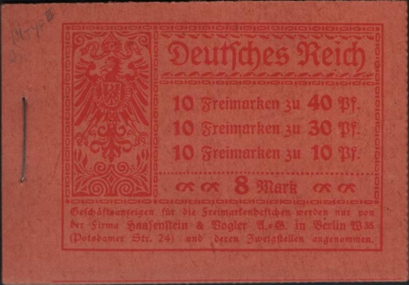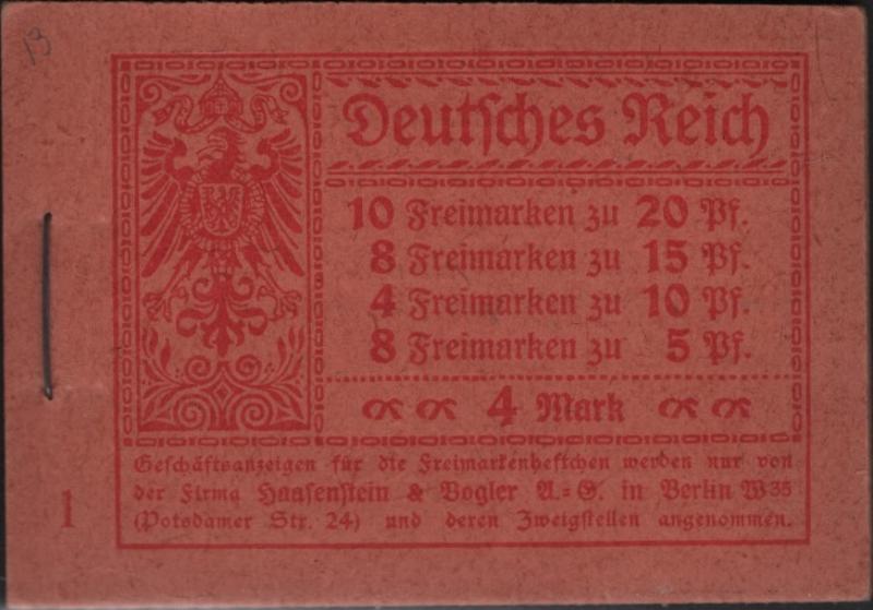 1920 Germania 4m full booklet, ONr. 1 (MH13A); VF (Image)