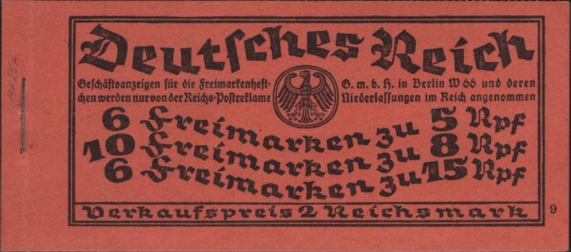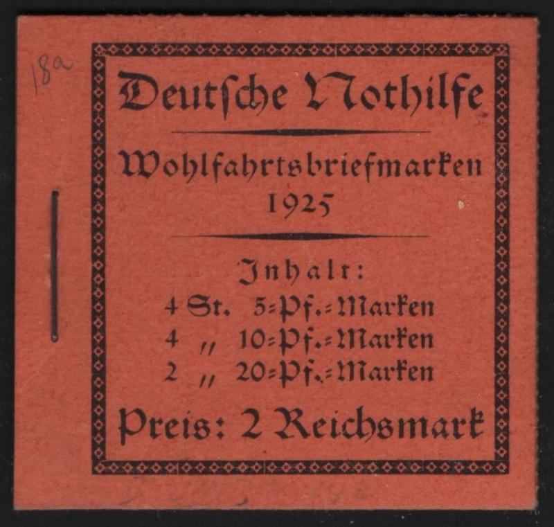 1925 Nothilfe full 2rm booklet w/ B12-13 panes of (4) and B14 pane of 2 + 2 labels (Michel MH18.1); VF (Image)