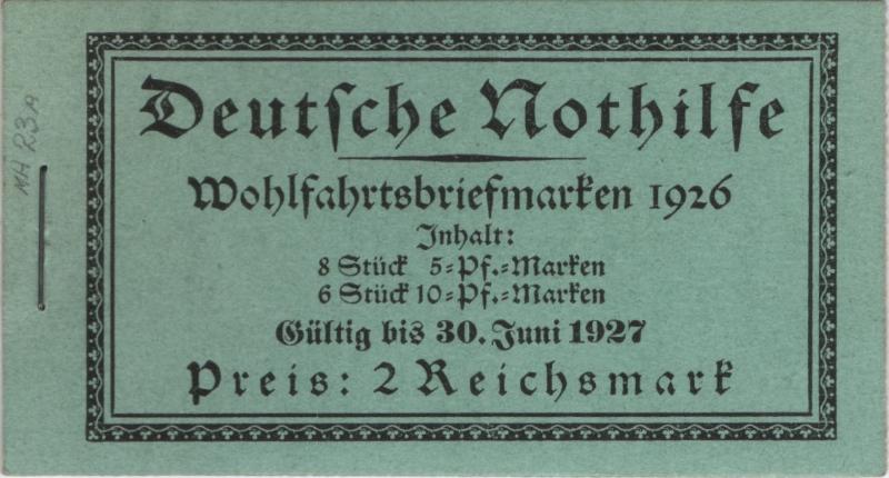 1926 Nothilfe B15-16 in full 2rm booklet (MH23.1); VF (Image)