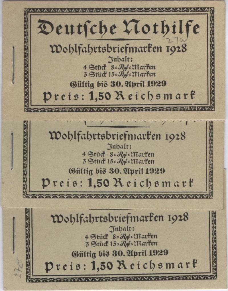 1928 Nothilfe B24a in full 1.50rm booklet, all three versions of pane w/ different labels (MH27.1, 27.2, 27.3); VF (Image)