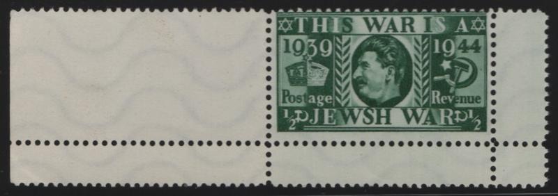German WWII Forgery of British ½d KGVI Coronation issue w/ Stalin and altered designs & text, NGAI margin single, only abt (500) produced (Michel 1) F-VF (Image)