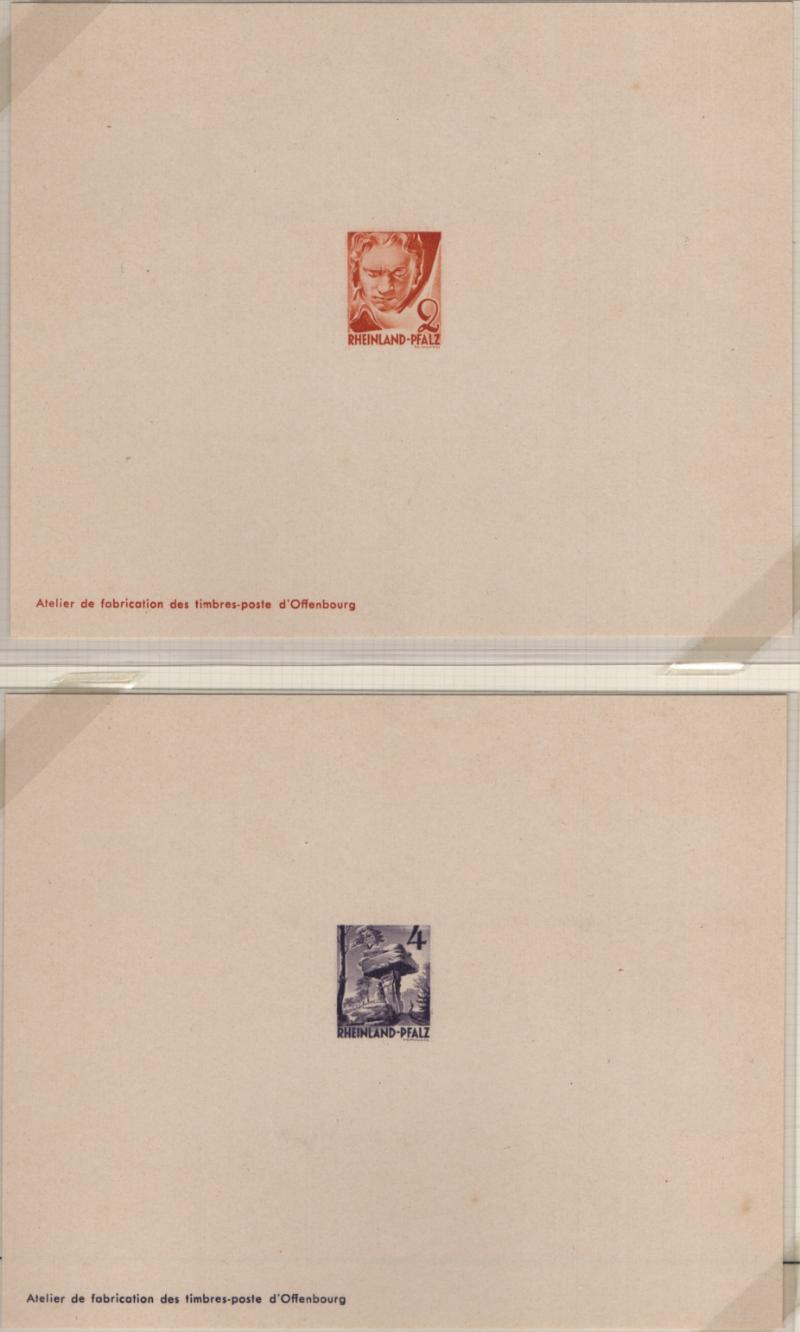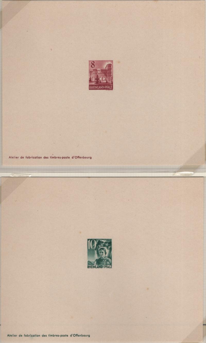 6N30-38 VF French Zone - Rhine Palatinate Third Issue in "Ministerblocks", official French-style proofs in issued colors (Michel 32-41 M) (Image) (imageb)