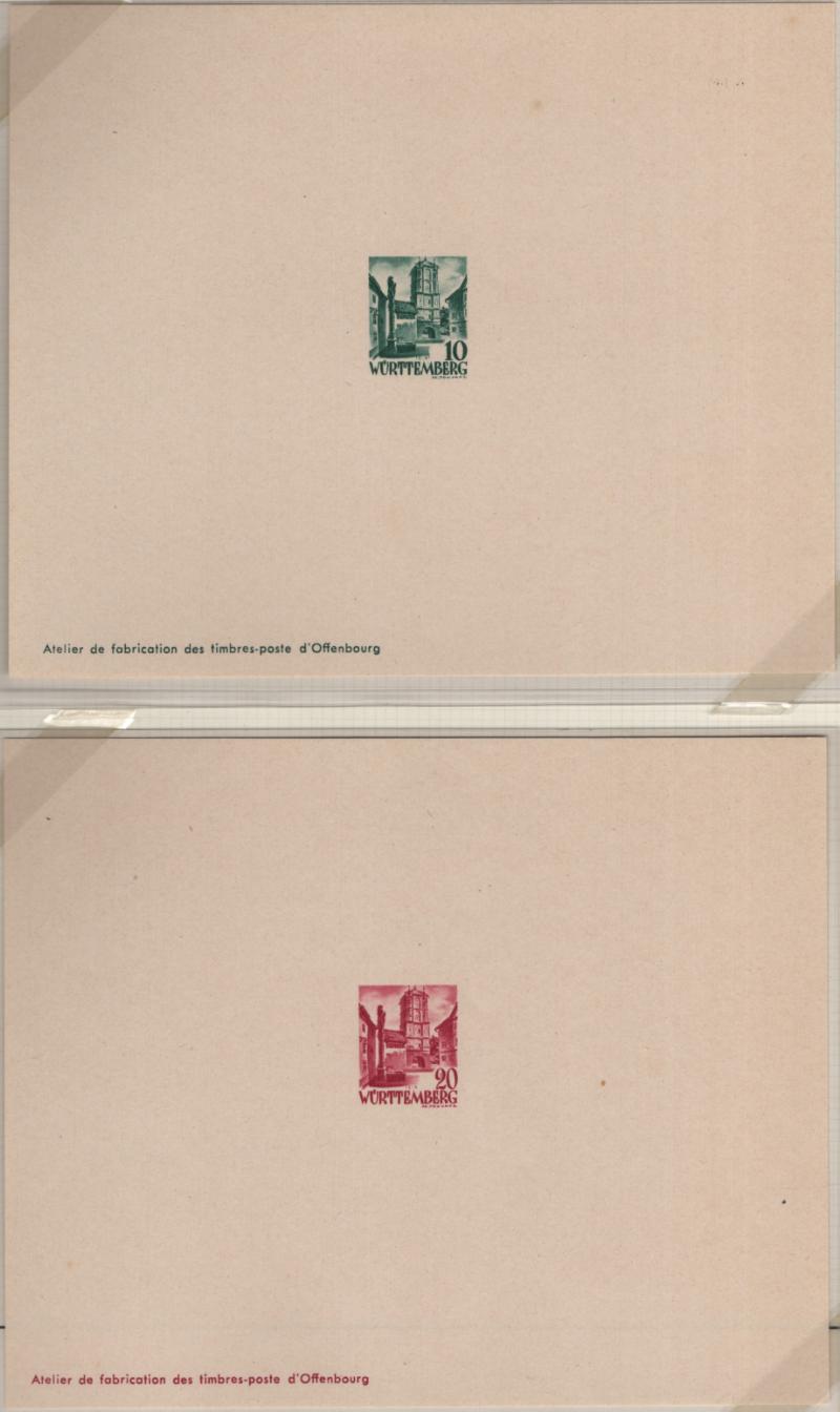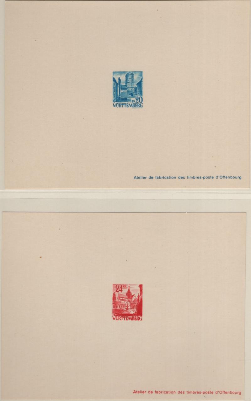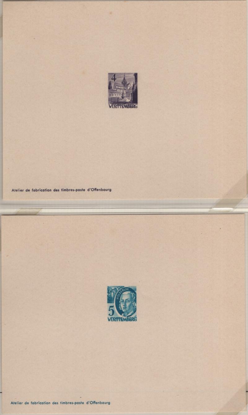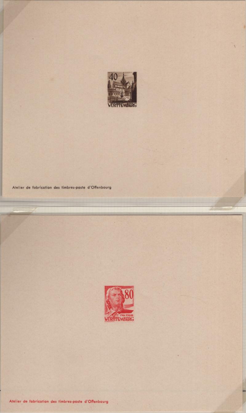 8N14-8N27 VF French Zone - Württemberg Second issue "Ministerblocks", official French-style proofs in issued colors (Michel 14-27 M) (Image) (imageb)