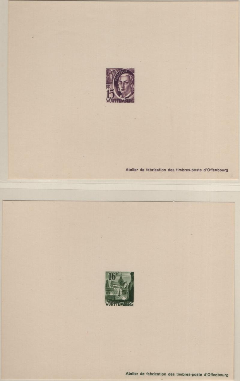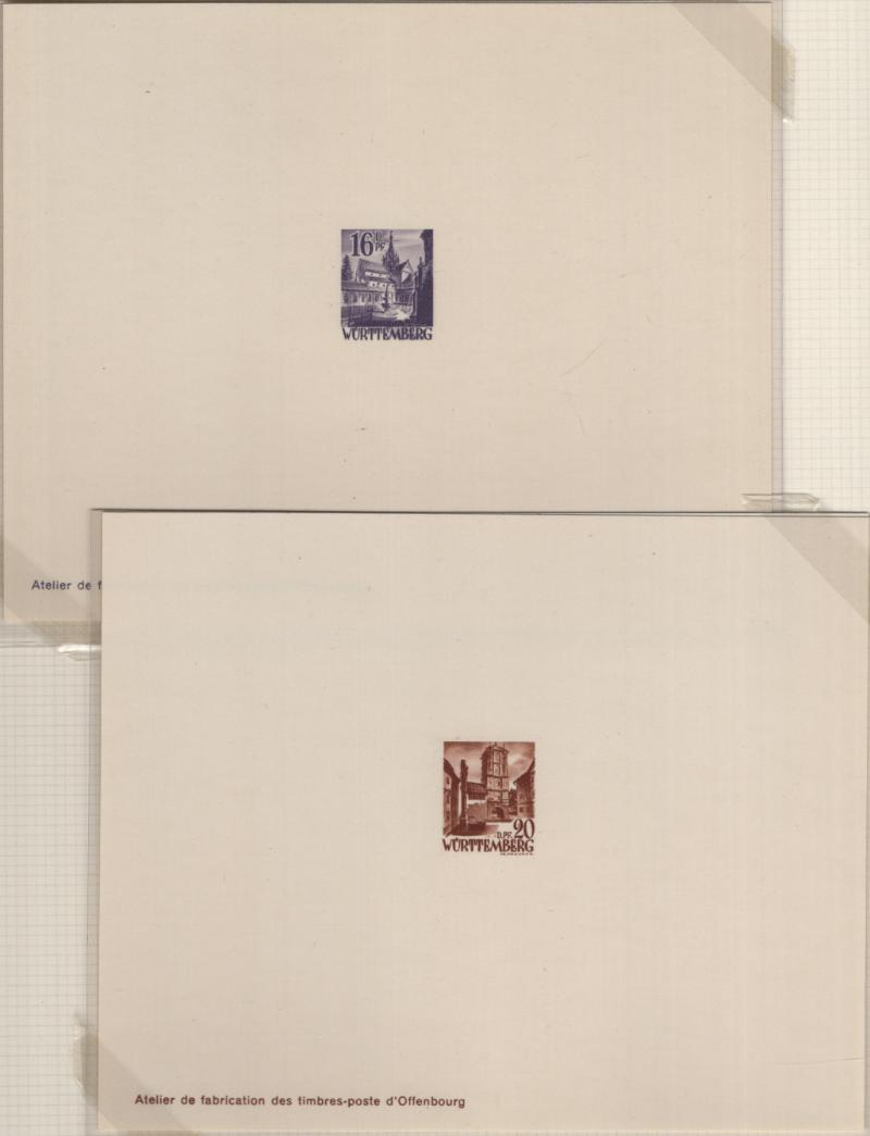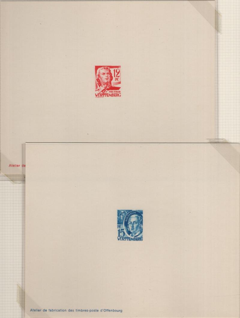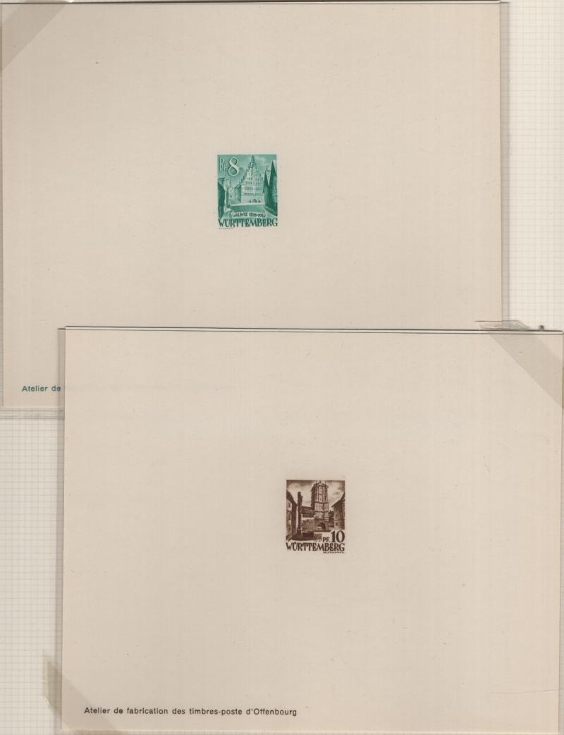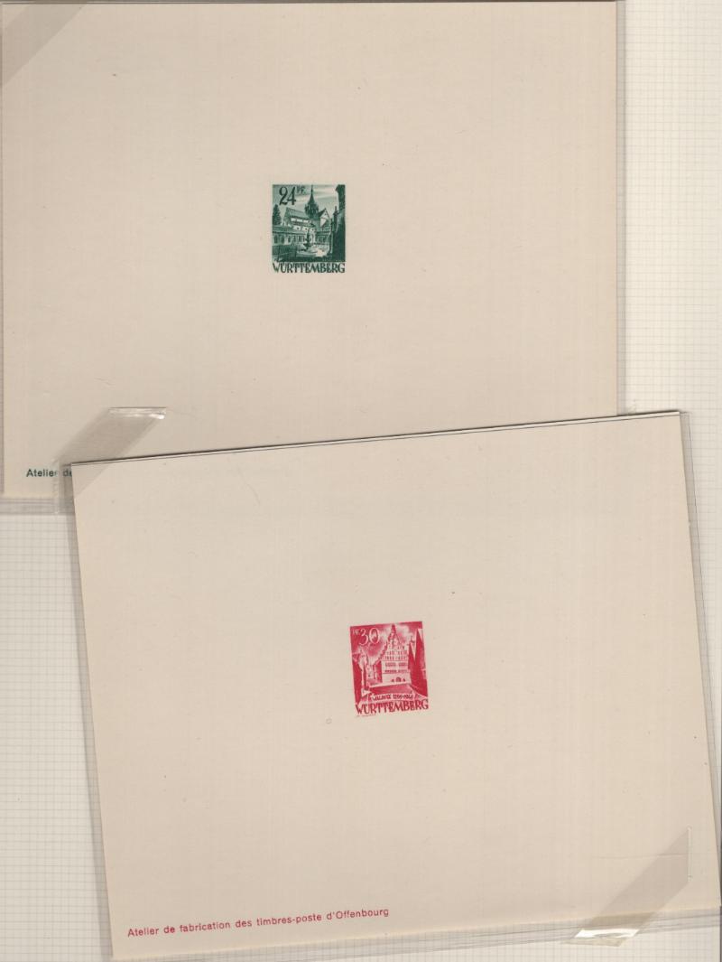 8N14-8N27 VF French Zone - Württemberg Second issue "Ministerblocks", official French-style proofs in issued colors (Michel 14-27 M) (Image) (imageb)