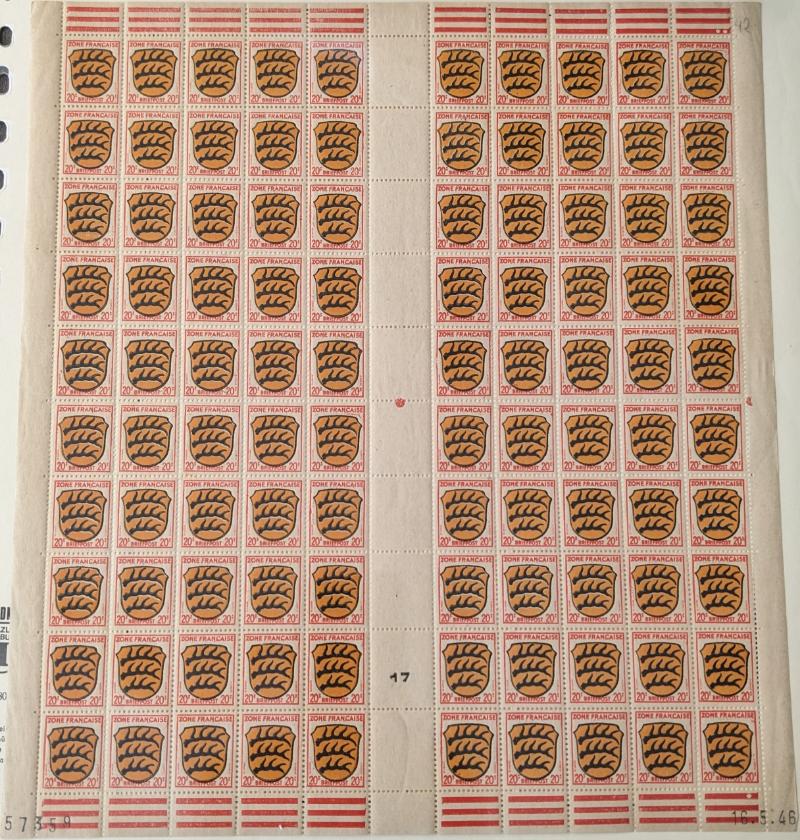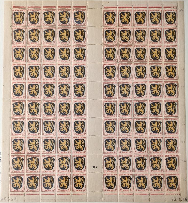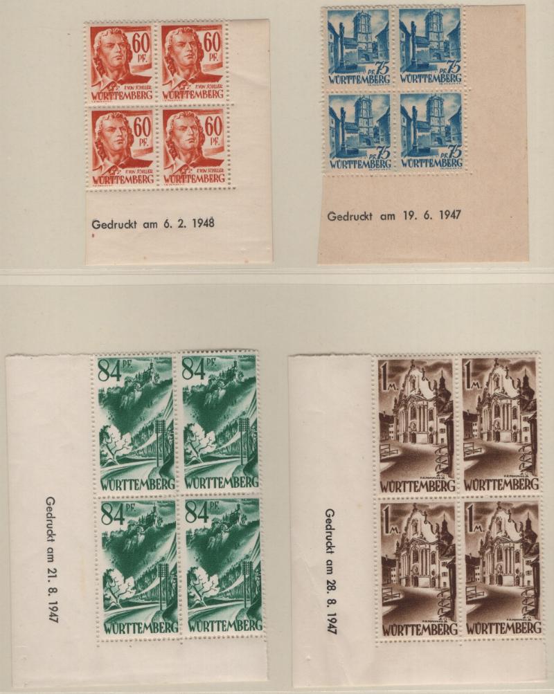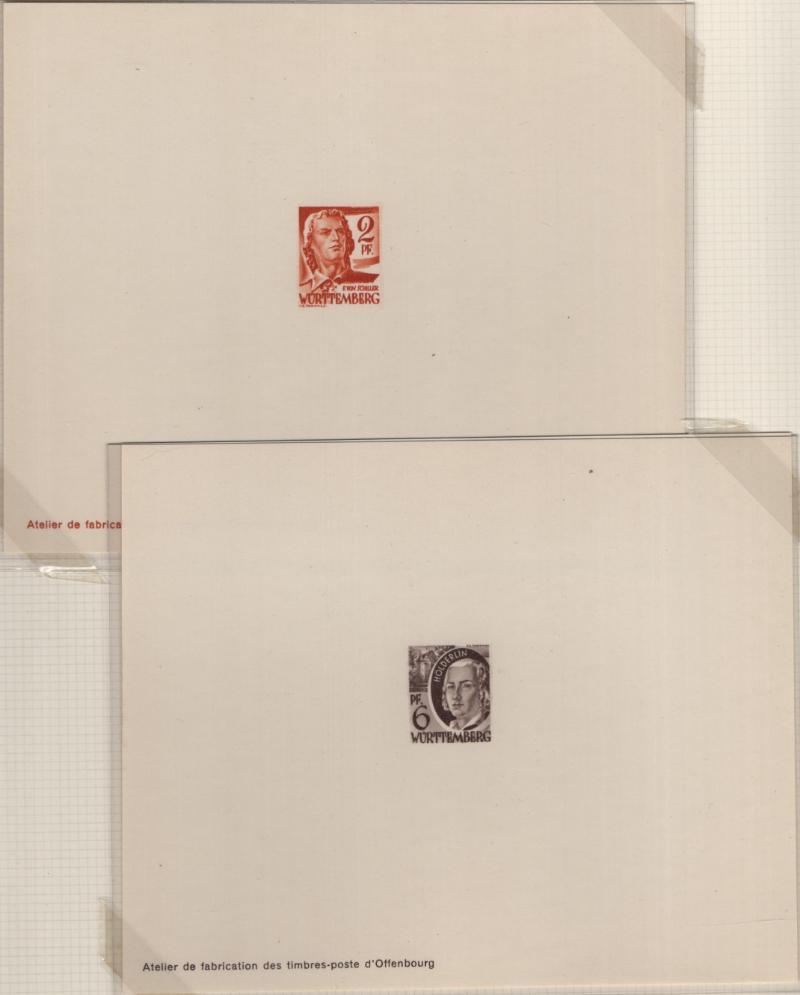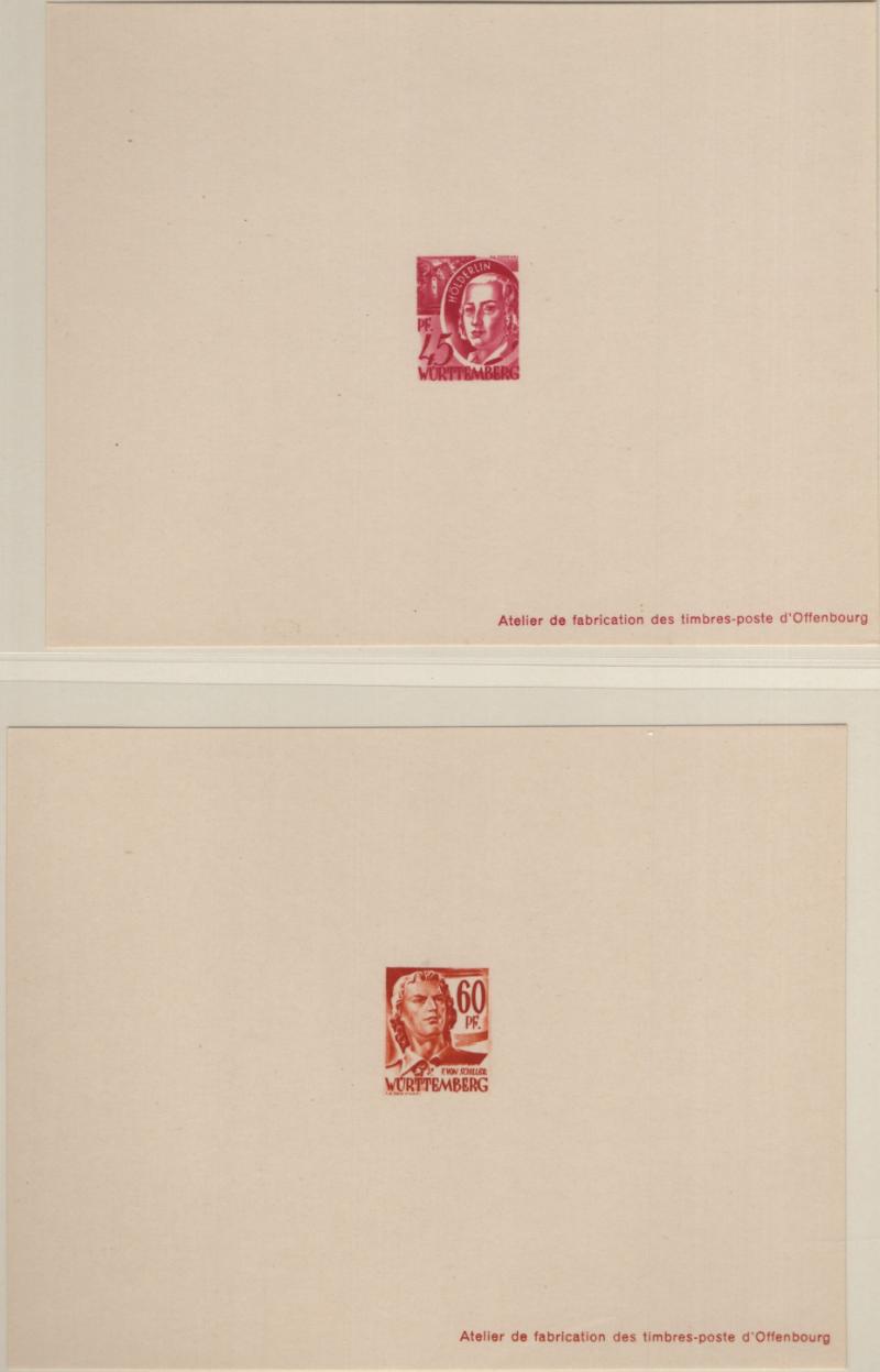 8N14-8N27 VF French Zone - Württemberg Second issue "Ministerblocks", official French-style proofs in issued colors (Michel 14-27 M) (Image) (imageb)