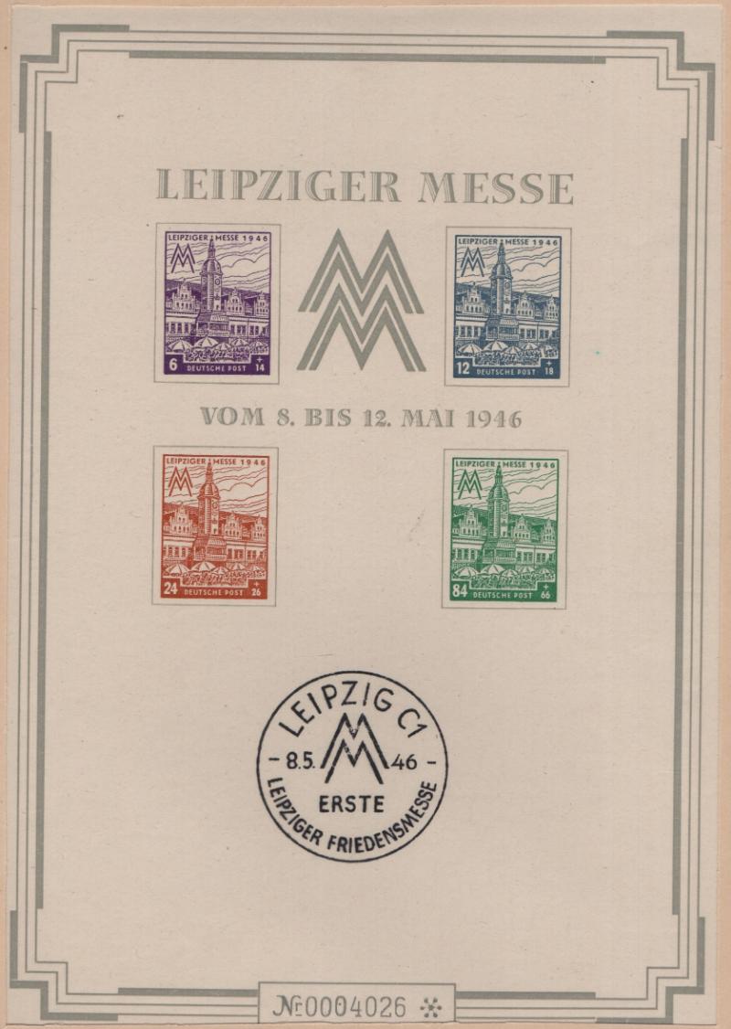 14NB16c var West Saxony Leipzig Fair special souvenir sheet, larger size w/ gray border, special first day of Fair cancel and serial number at bottom, in original folder, NGAI, VF (Michel Block 5 S X) (Image)