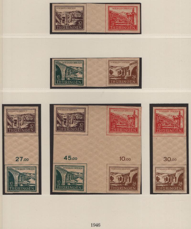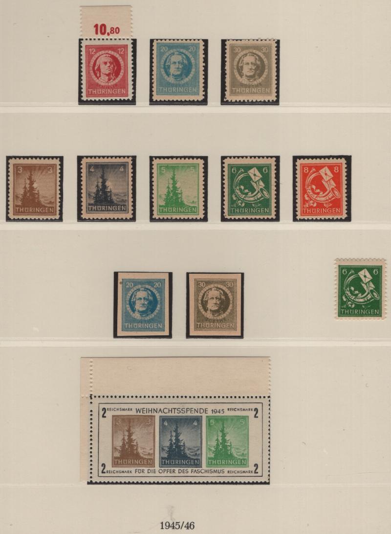 SOVIET ZONES Specialized unused collection of the Regional issues, in Lindner T album w/ slipcase, mostly complete, highlights incl 11N1-7 full sheets, 11N1a-7a, 12NB10 imperf (€35), East Saxony 15N1 NH w/ signature & 1947 cert from Dr. Dub, plus a