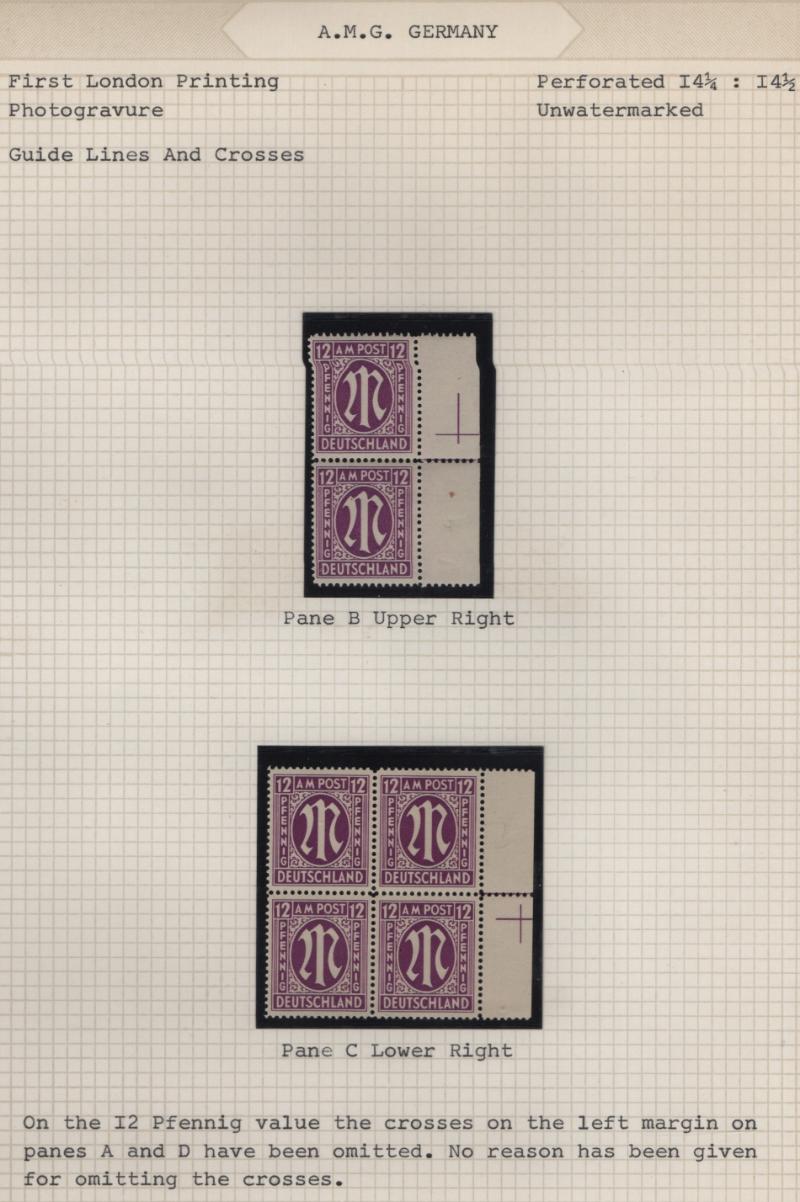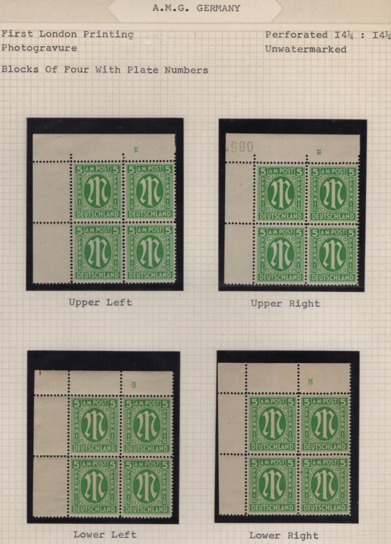 AMG Issue unused collection w/ varieties, on Lindner T pages in green binder; singles complete from all three printings, all (9) American print in full panes of (100) w/ selvage & plate numbers; varieties incl (2) diff w/ full strong set-off, abt