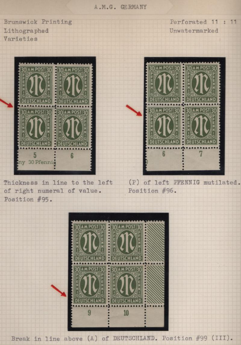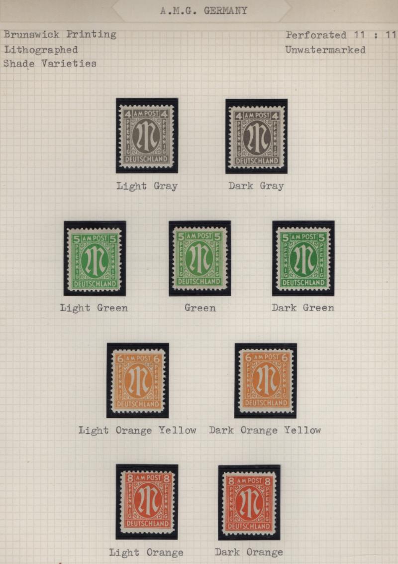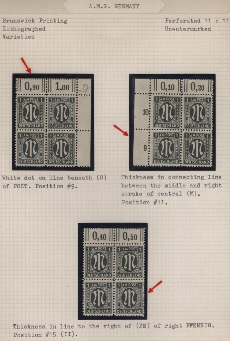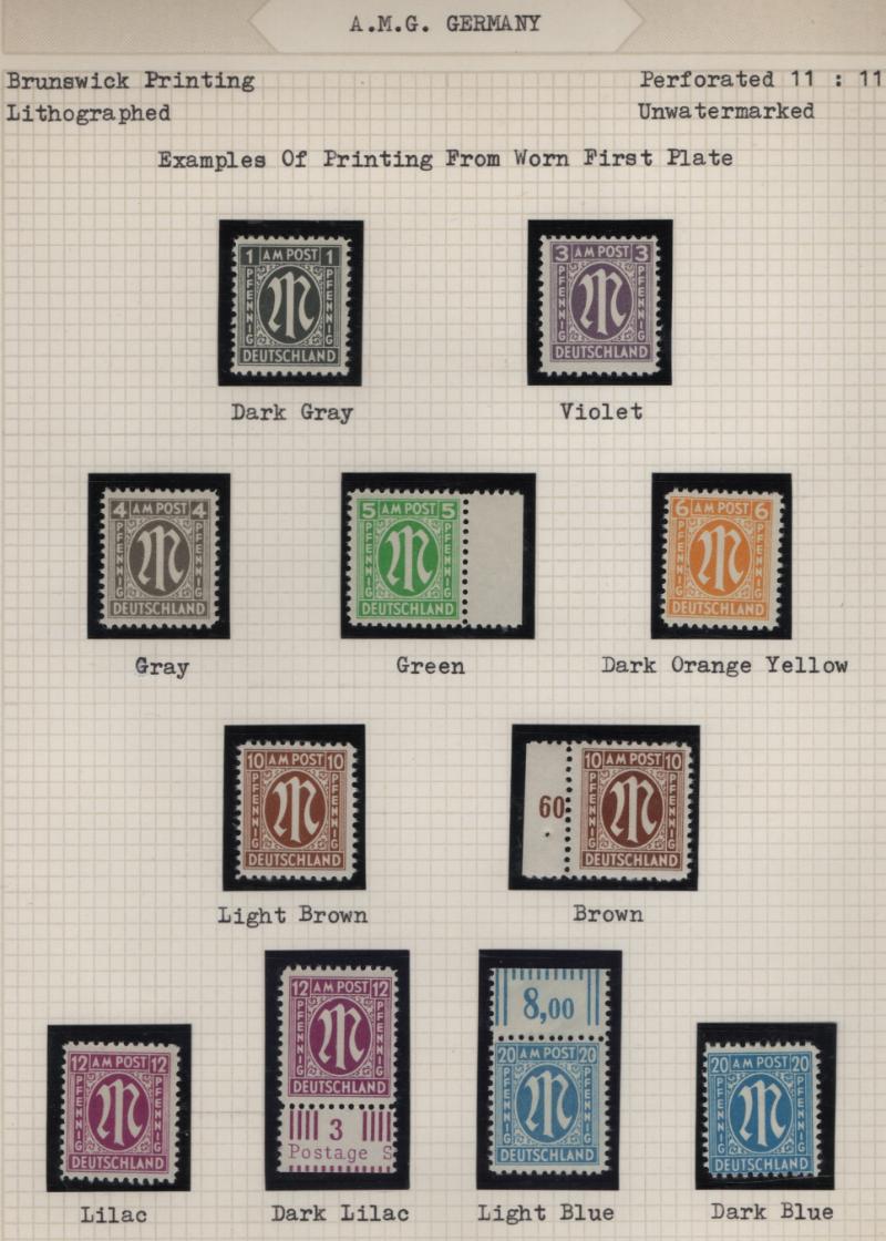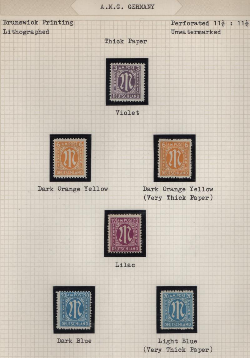 AMG Specialized collection of the Brunswick printing 3N1-20, (600+) items in black mounts on well-annotated quadrille pages in (2) binders; organized by paper type, color shade, perforations and other varieties; noted used 30pf base of "P" in "POST"