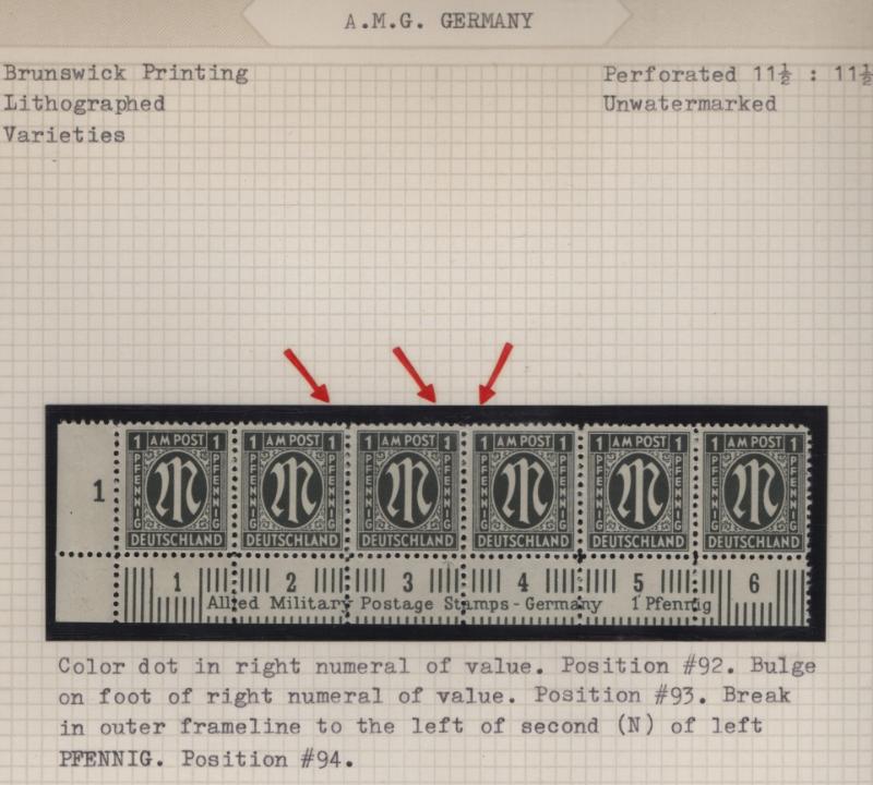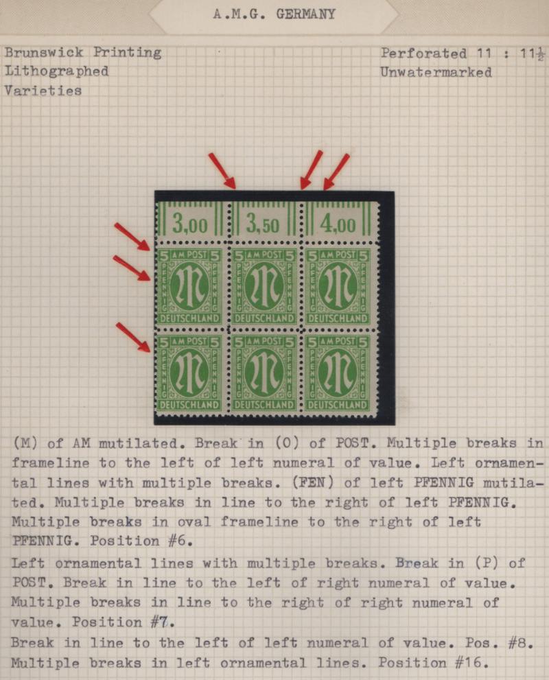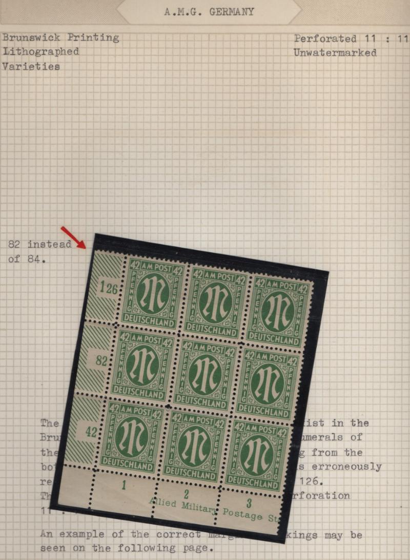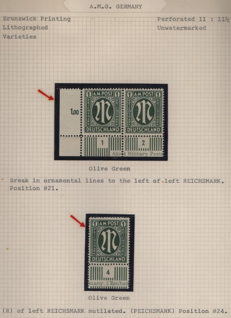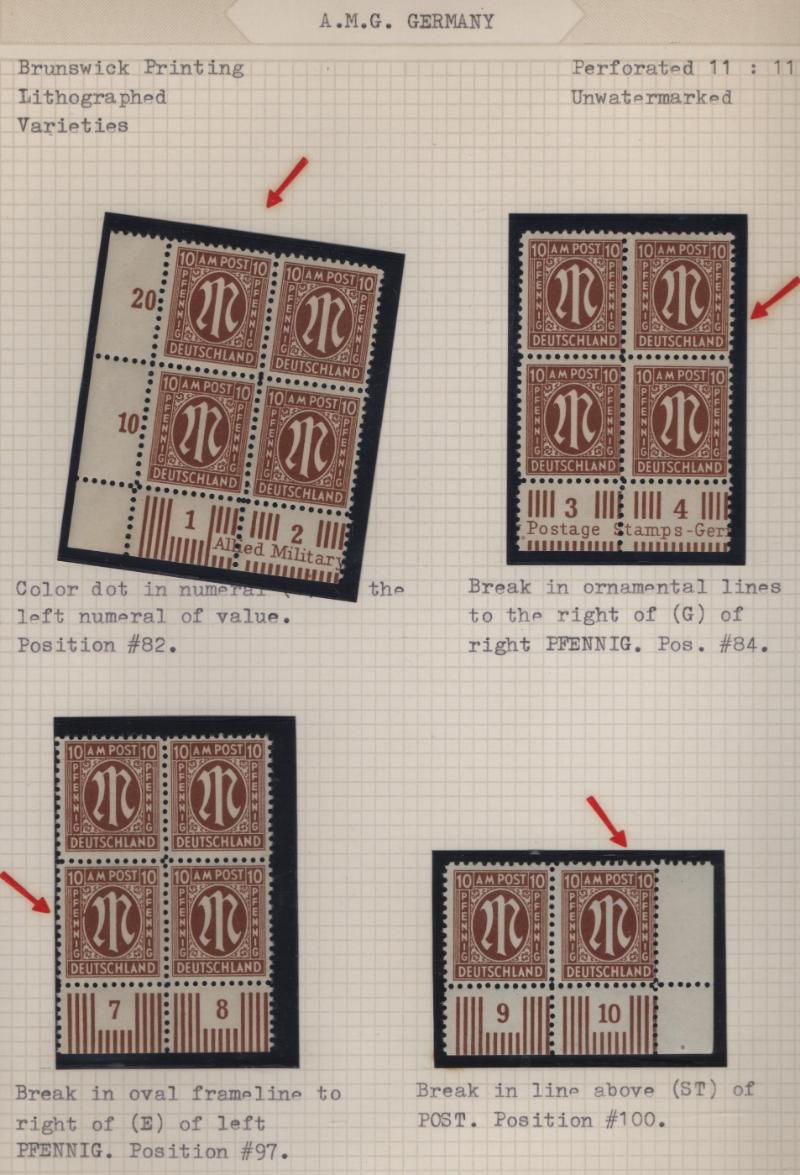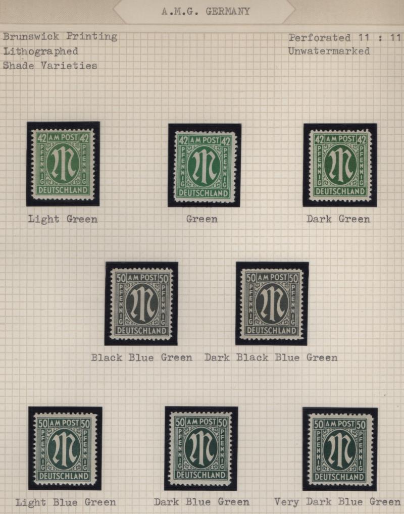 AMG Specialized collection of the Brunswick printing 3N1-20, (600+) items in black mounts on well-annotated quadrille pages in (2) binders; organized by paper type, color shade, perforations and other varieties; noted used 30pf base of "P" in "POST"