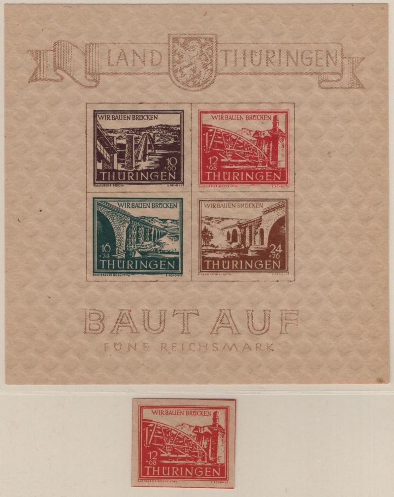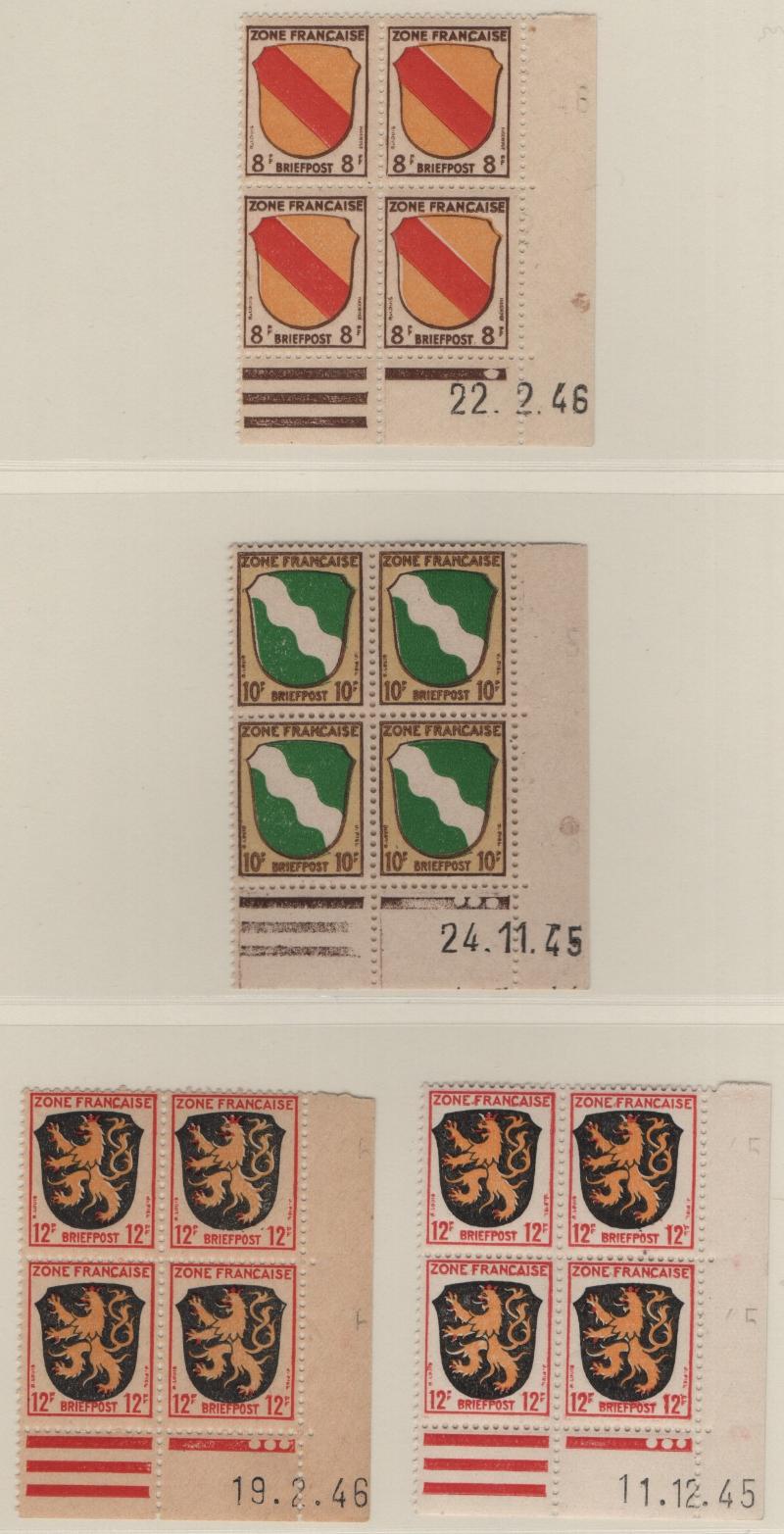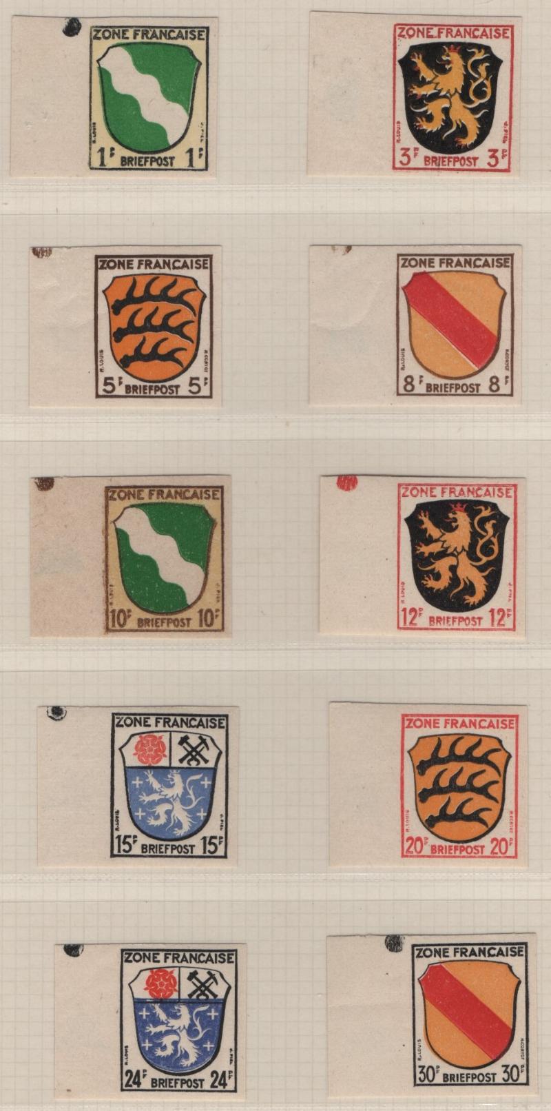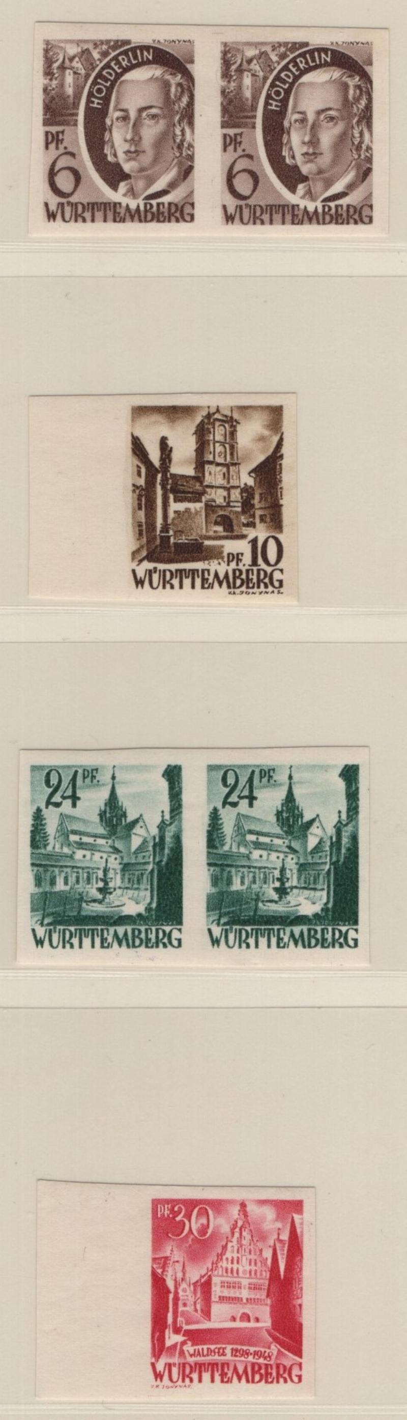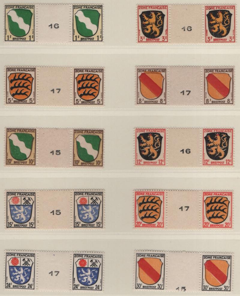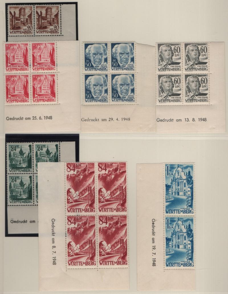 8N1-8N13 VF French Zone - Württemberg First issue "Ministerblocks", official French-style proofs in issued colors (Michel 1-13 M) (Image) (imageb)