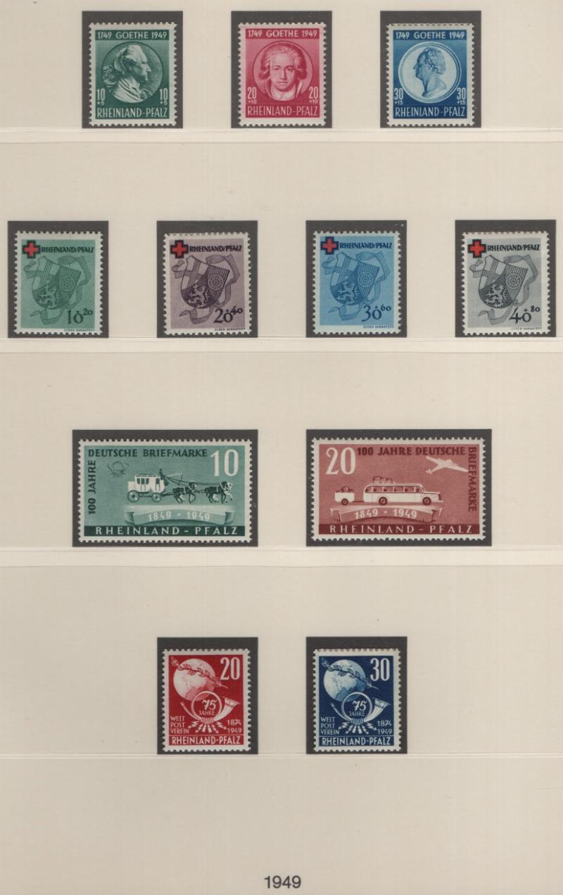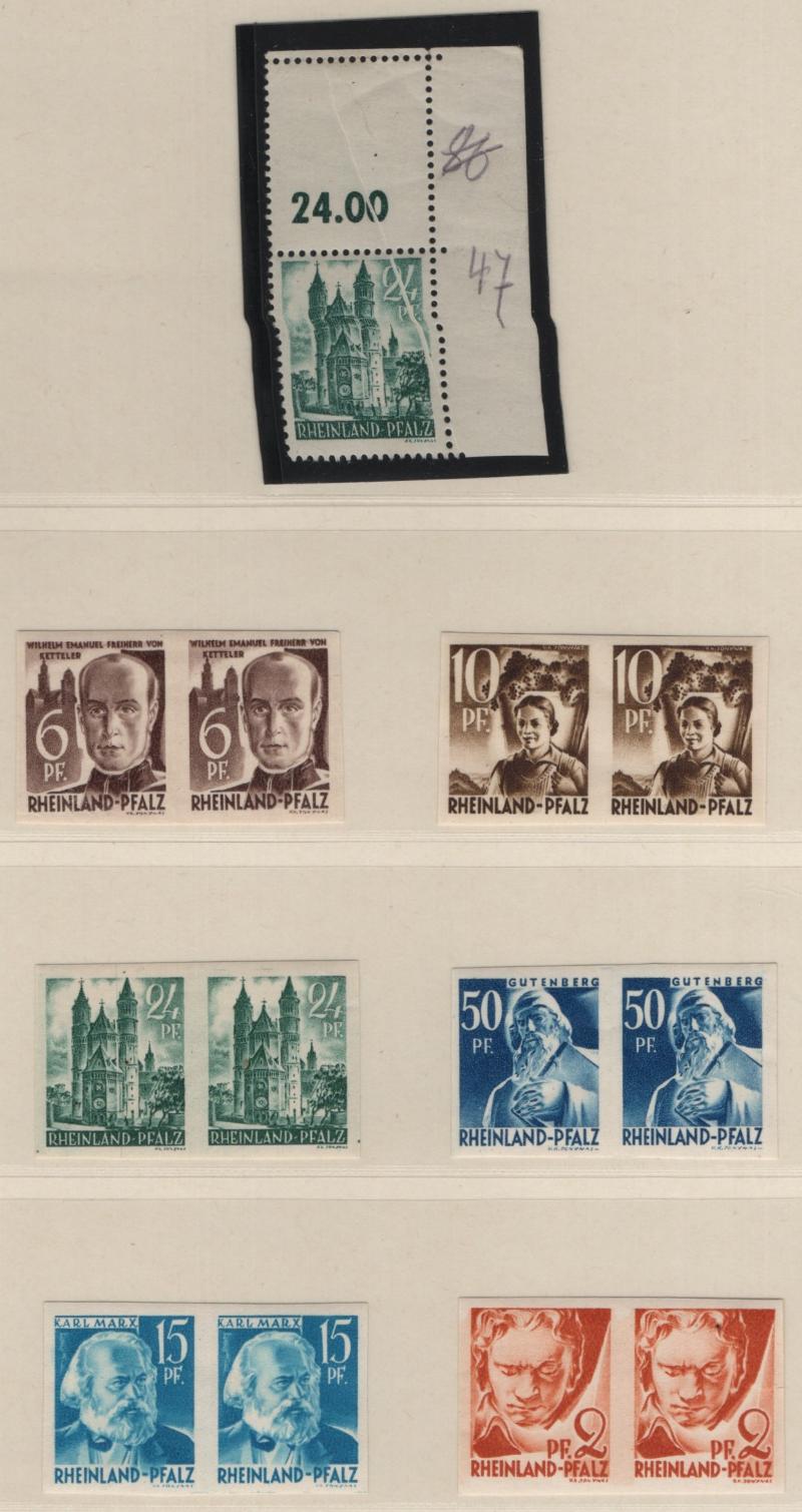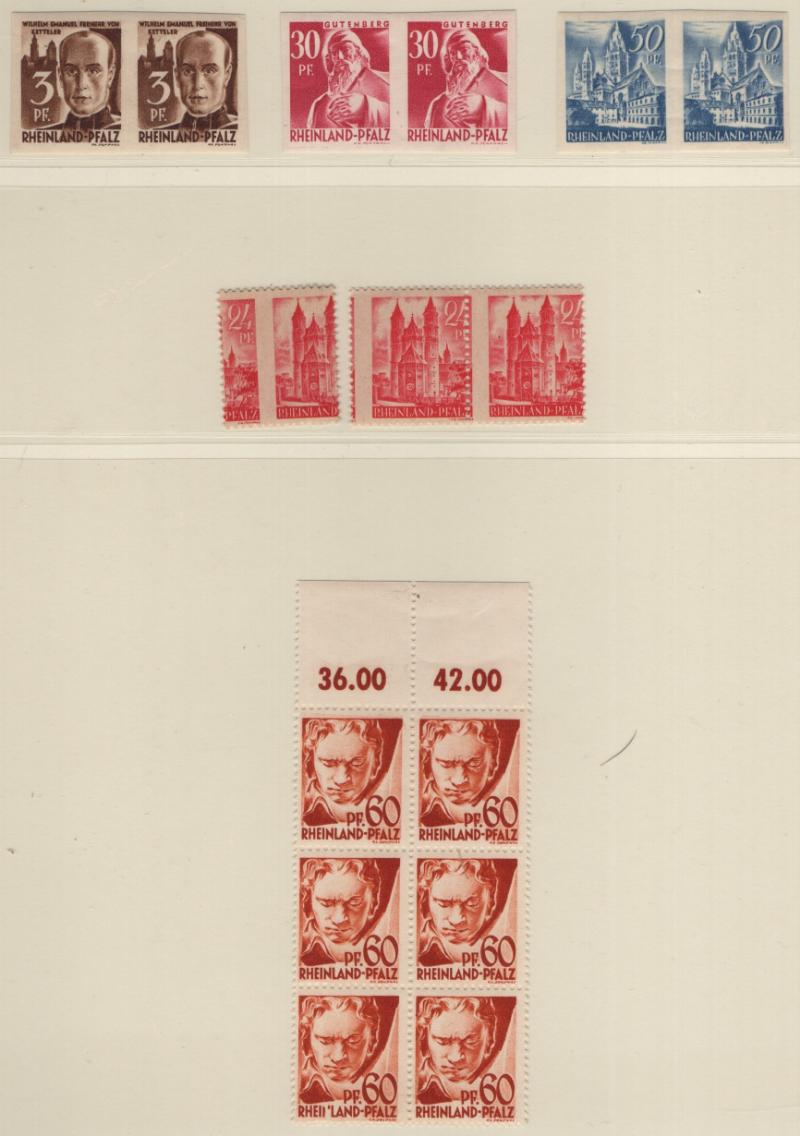 FRENCH ZONE - RHINE PALATINATE Unused collection in Lindner T album; complete NH basic issues incl S/S; extras incl (9) diff imperf pairs, couple misperfs, many diff print date & serial number blocks, basic definitives not checked for types, but