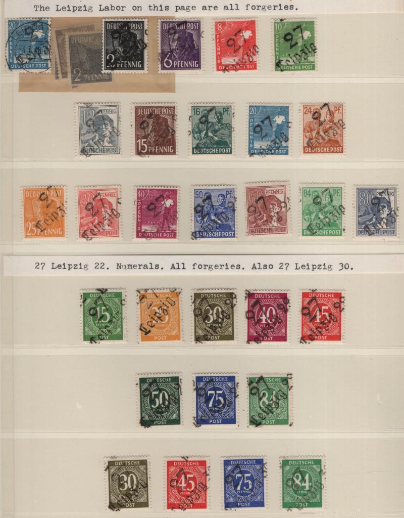 BEZIRK Specialized collection of overprinted stamps, covers & forgeries; an excellent reference collection of (100s) in (2) Lindner T albums, majority of items were sent to the Russian Zone Handoverprint Study & Research Group of GPS in 1974, w/