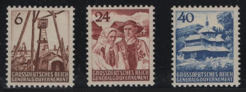 Unissued set of (3) showing people & scenes of southern Poland & Ukraine, printed in Vienna and sold by them after the war (Michel I-III), fresh NH VF (Image)