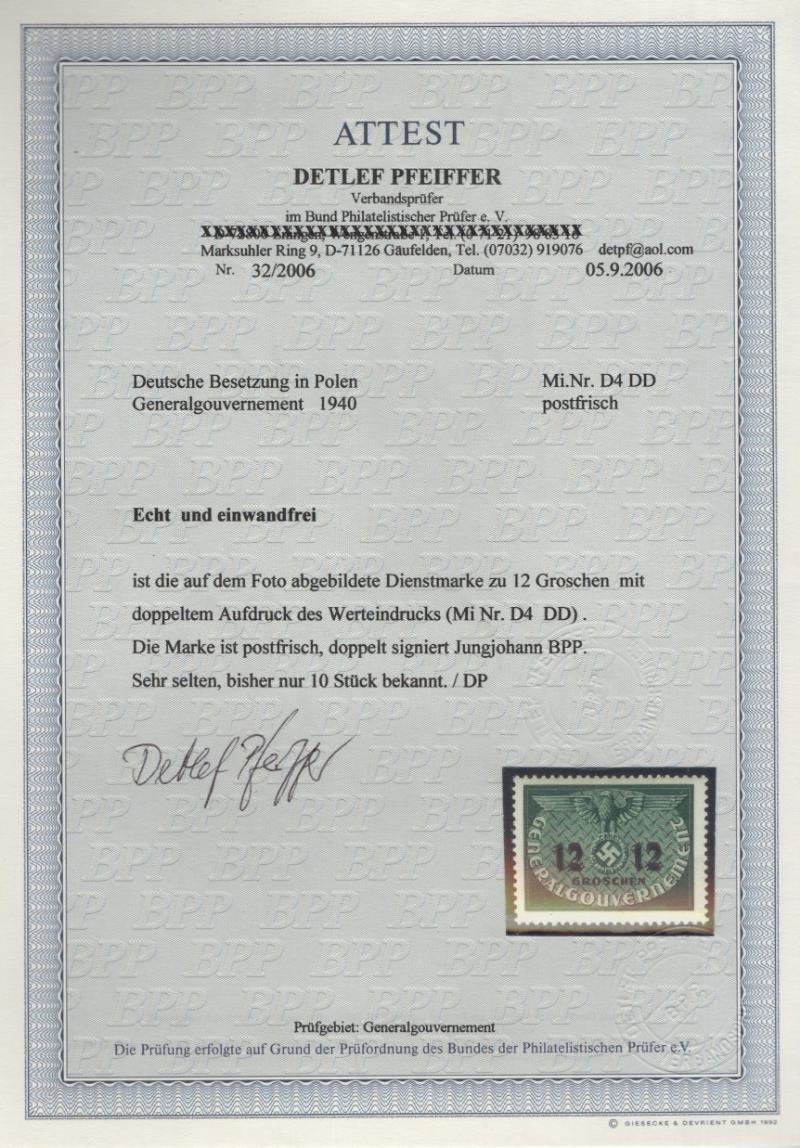 NO4 VF National Emblem 12gr dark green, double print both "12", double signed Jungjohann BPP, 2006 Pfeiffer BPP Cert states "postfrish" but there is a small gum disturbance near the signatures; RARE, only about (10) examples known (Michel D4 DD) (Image) (imageb)