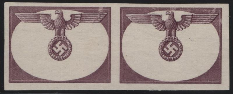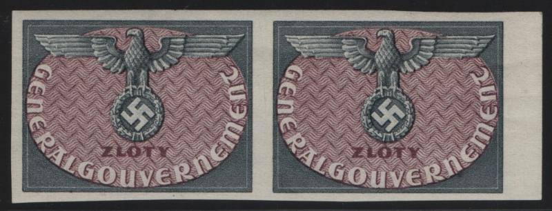 First zloty size Official, Hz pair imperf trial color proof for frame only, in unissued brown violet color, full OG NH VF (Michel D13 P5) (Image)