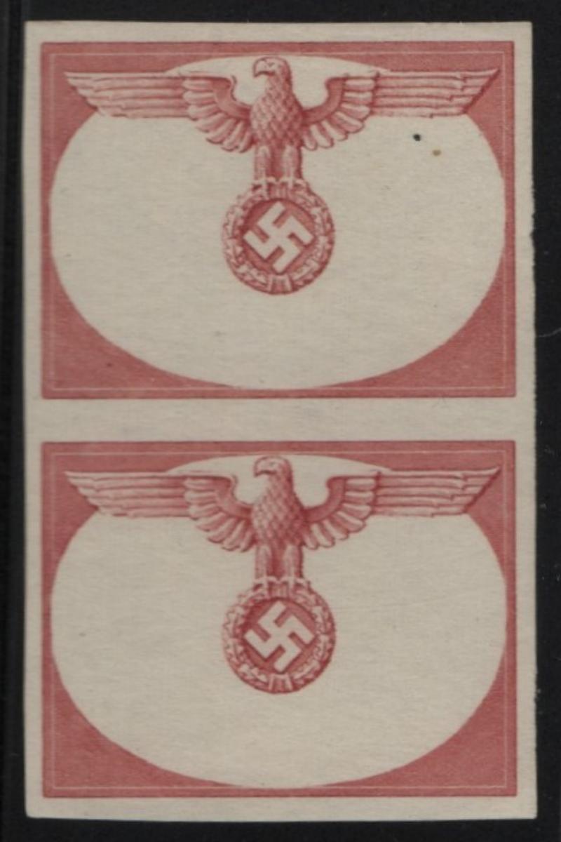 First zloty size Official, vertical pair imperf trial color proof for frame only, in unissued light red color, full OG NH (Michel D13 P5) (Image)