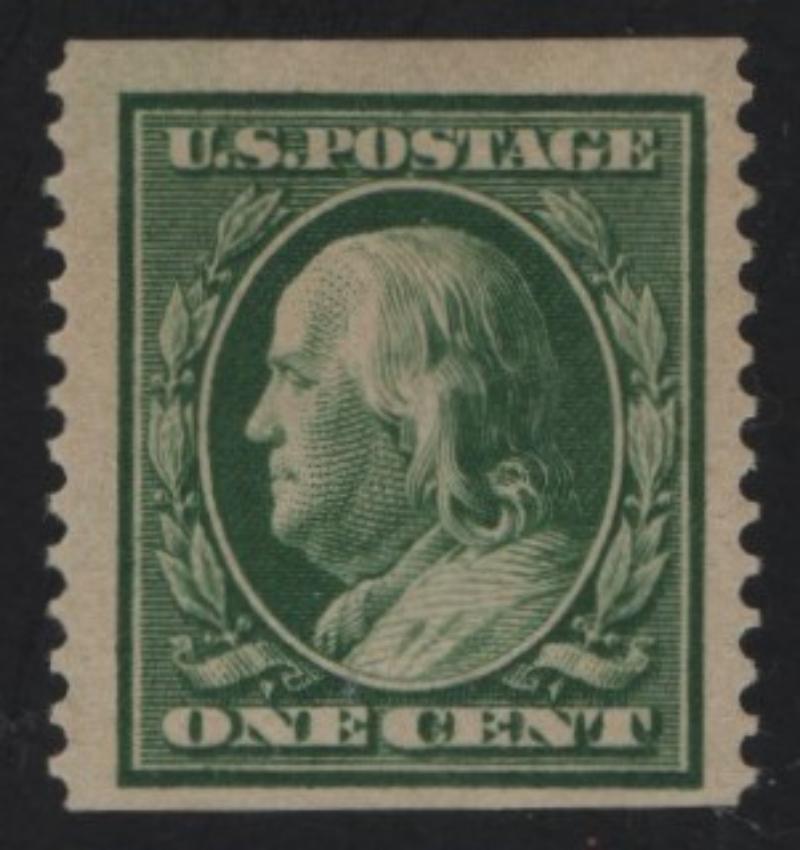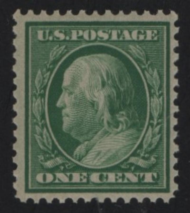 358 VF NH, One Cent green Franklin on bluish paper, copy of 2005 PF Cert (for Block) (Image)