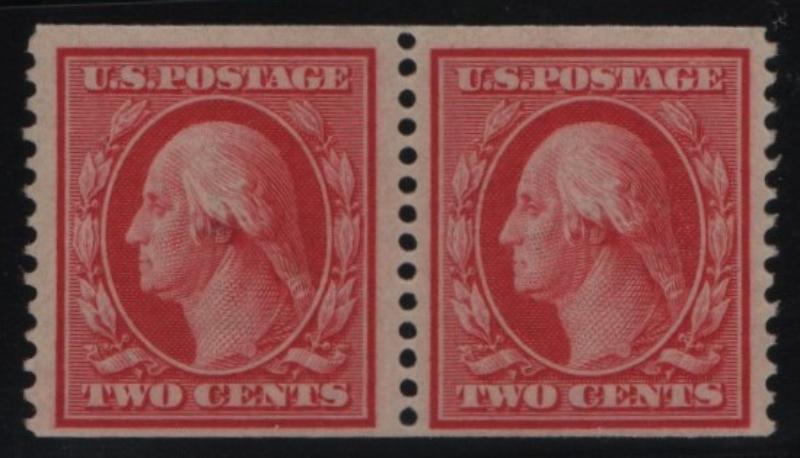 F-VF+ NH, Pair, Two Cents carmine w/ 3mm spacing, "unused OG" per 1984 PF Cert (Image)