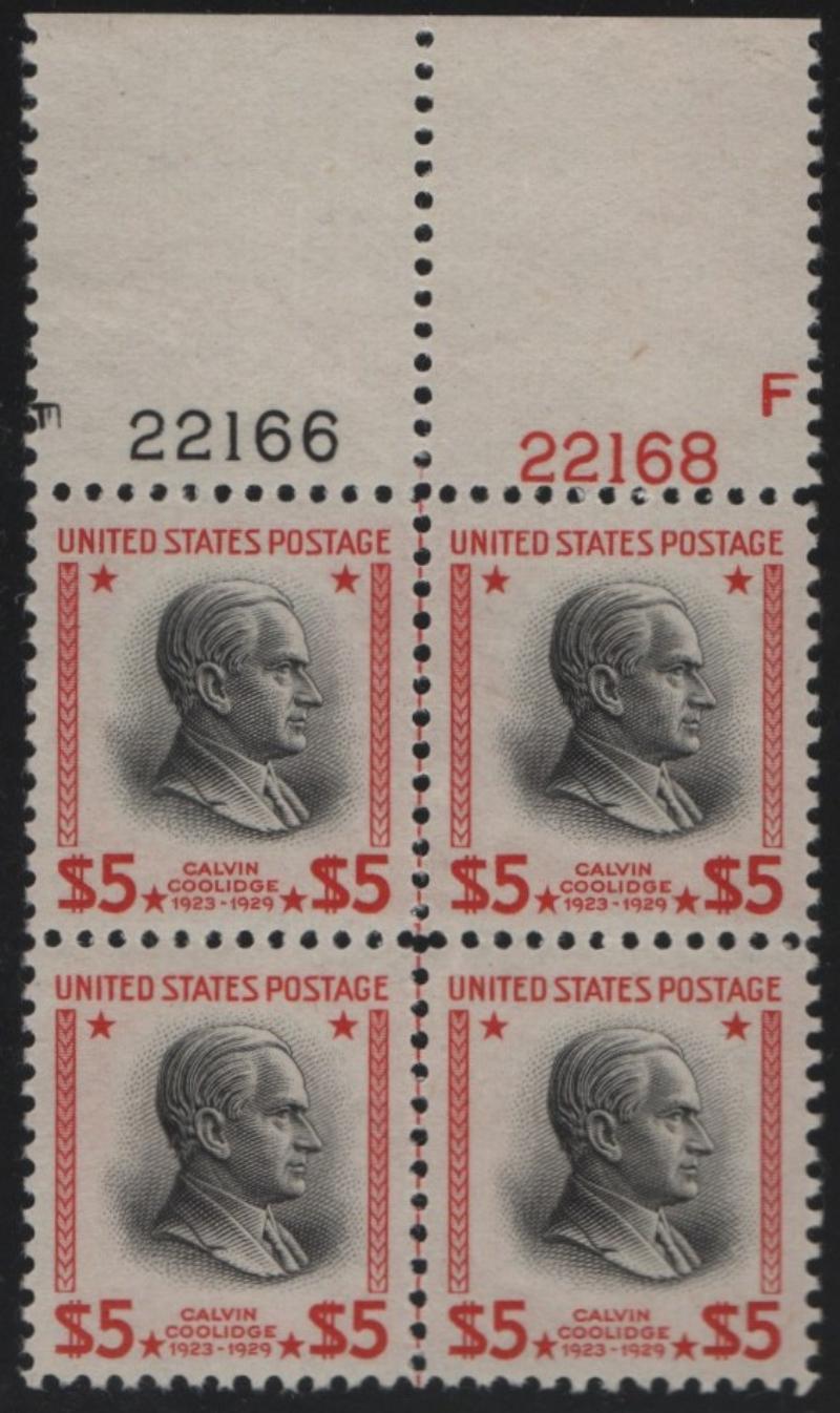 NH, Plate Block $5 Coolidge, top pl# 22166/22168 (Image)