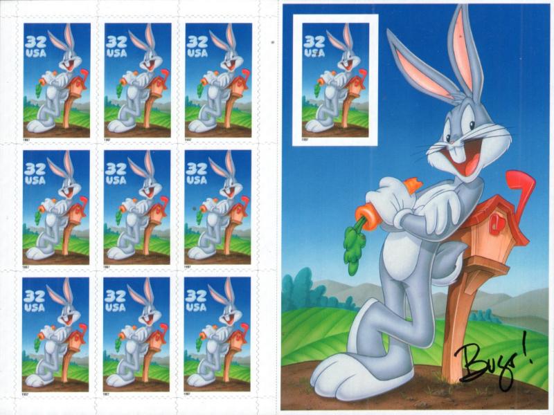 VF NH, (12) imperf 32¢ Bugs Bunny bklts (Image)