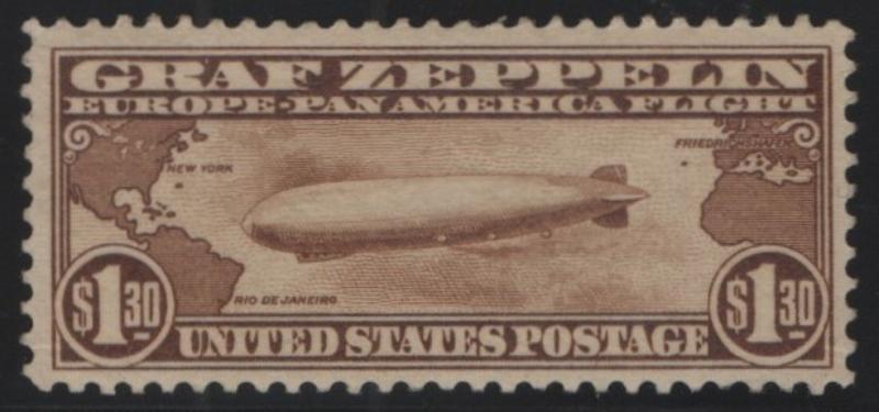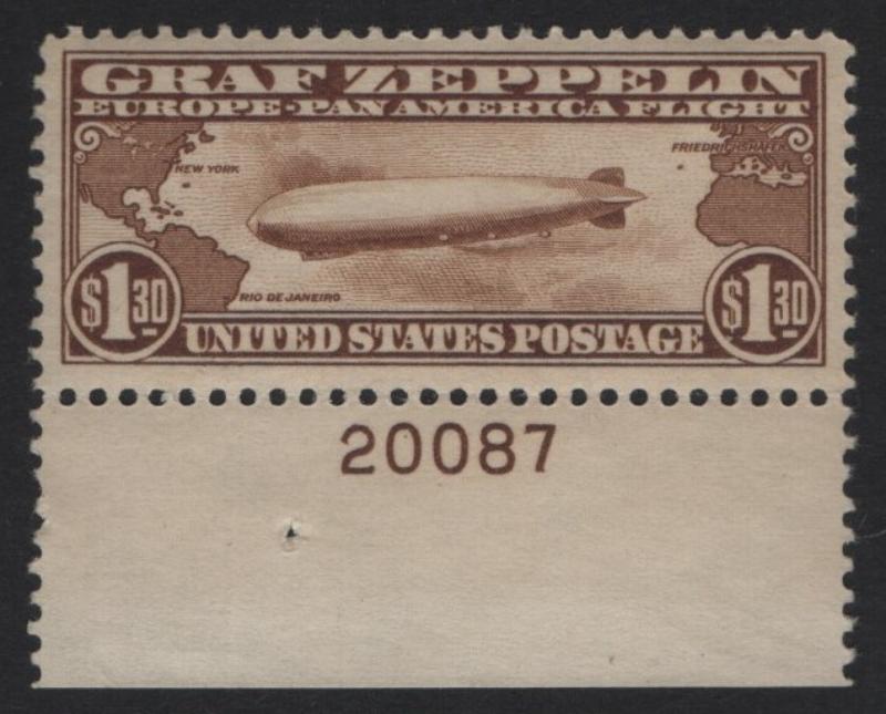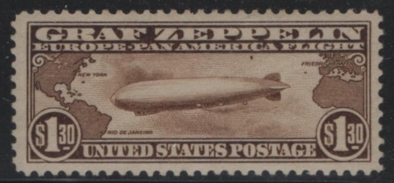 F-VF $1.30 brown Zepp w/ bottom selvage & nice flag cancel (Image)